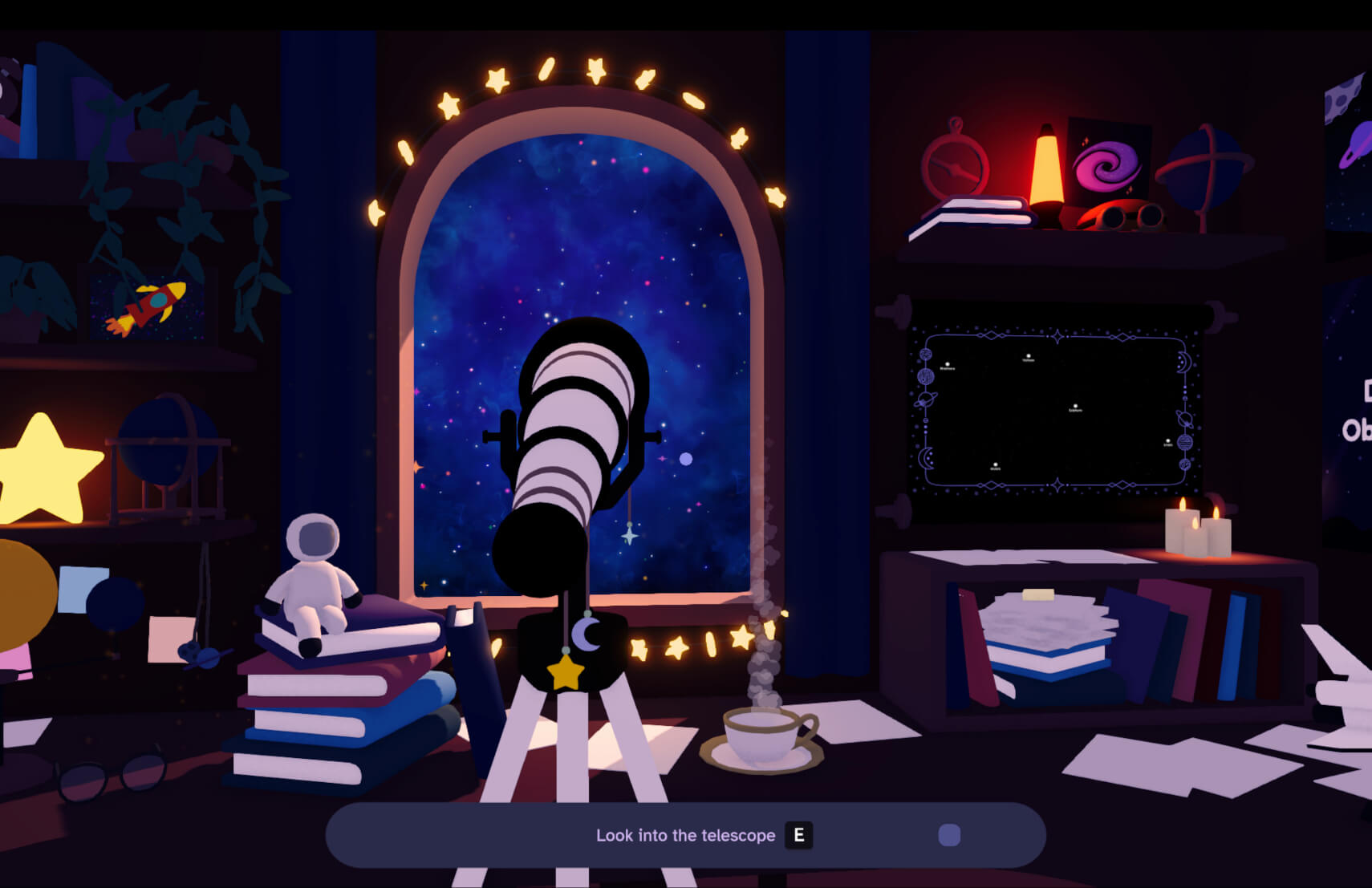 《星域漫游》是一款轻松治愈的天文游戏。你将回到故去祖父的书房,接手观星与天体摄影,探索宇宙的奥秘——手边总有一杯温暖的饮品相伴。书房虽小,但通过望远镜,一个全新的宇宙正待你探寻。
