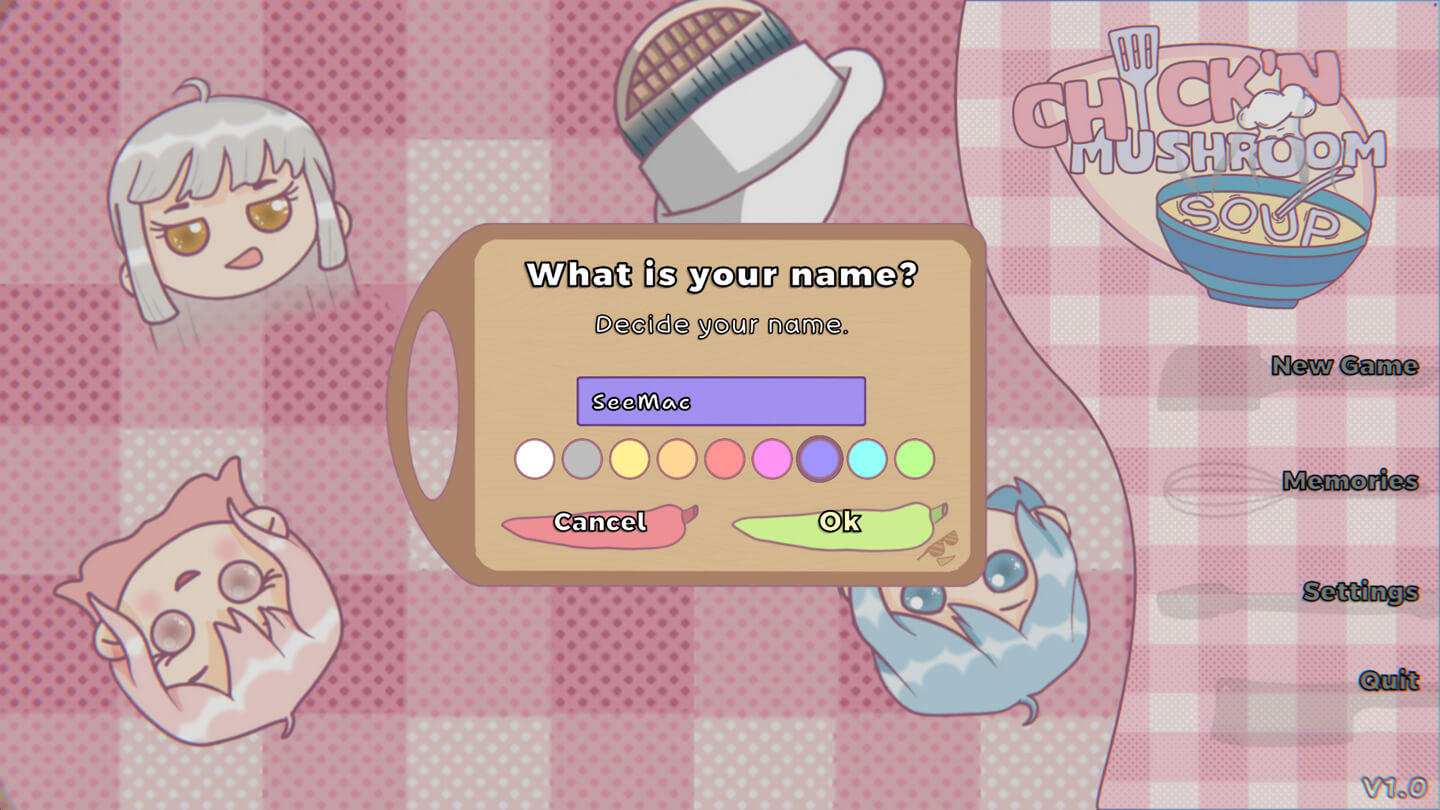 鸡肉蘑菇汤 Chick’n Mushroom Soup for Mac v1.0 英文原生版 休闲 2026-03-09 5 动漫风格的视觉小说 游戏介绍 Chick’n Mushroom Soup 是一部动漫风格的视觉小说,你被一所烹饪学院录取,里面有可爱的女孩。尽管你过去完全不合群,但现在你有机会改变这一点。 你可以选择最适合亲热的女孩,也可以直接忽略她们。建立良好的关系取决于您。 通过反映每堂烹饪过程的挑战来提高您的烹饪技能。煮得好还是烧坏取决于你的烹饪技巧。 每天都是学习不同美食的不同食谱并与同学合作的机会。每次您制作完整的菜肴,您都会获得一个等级(A-B-C)。最终,这些成绩将影响您的学术生涯。