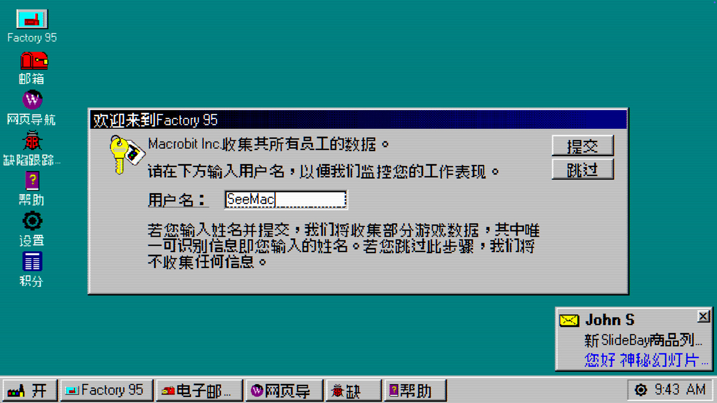 在一个复古操作系统中探索,通过电子邮件完成任务,并从万维网上下载升级。
