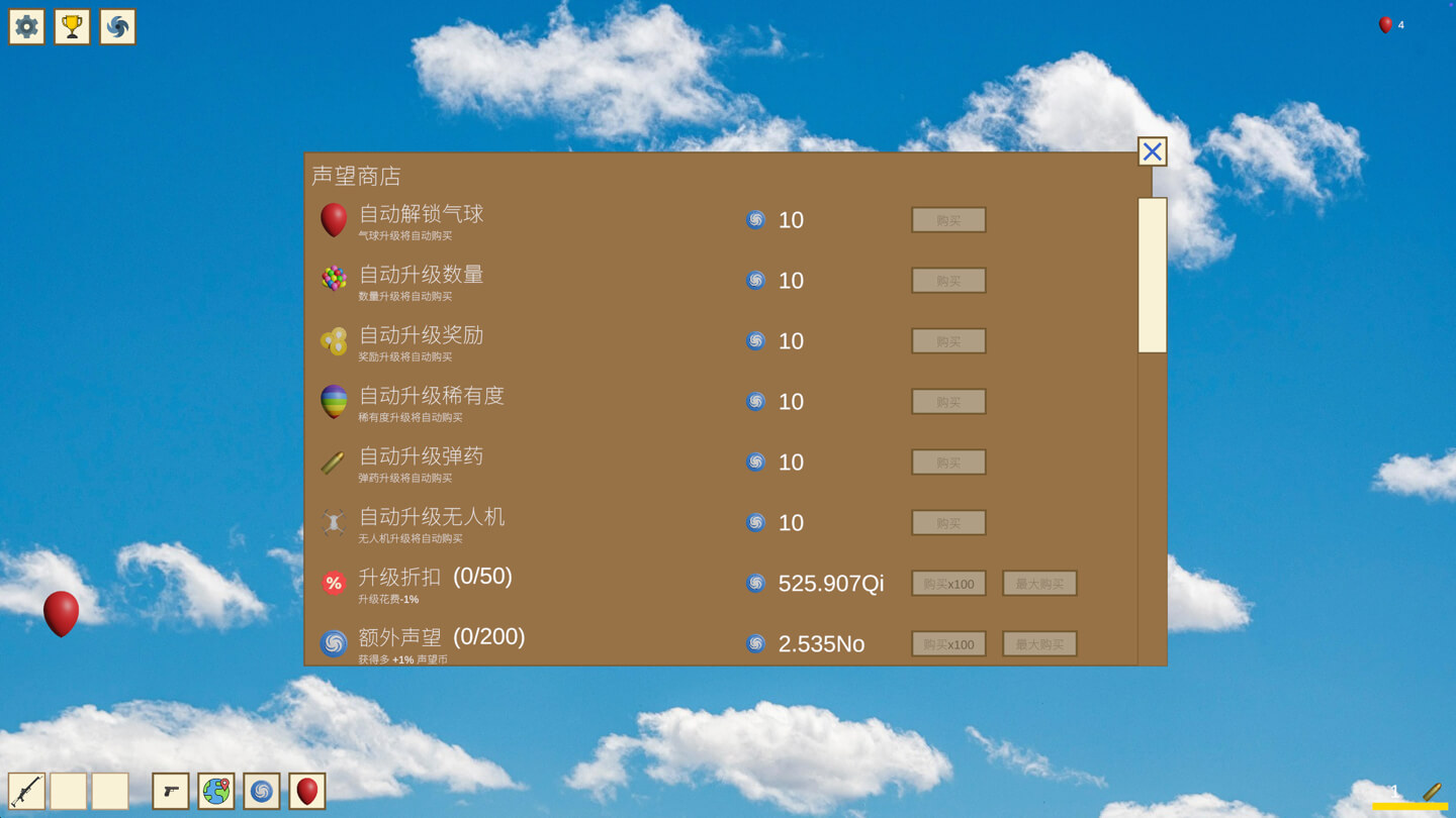 《Balloon Hater》是一款增量点击类游戏。戳破气球、购买武器、探索新区域、解锁新能力、寻找特殊气球以获得临时加成,并升级你的装备以提升奖励。