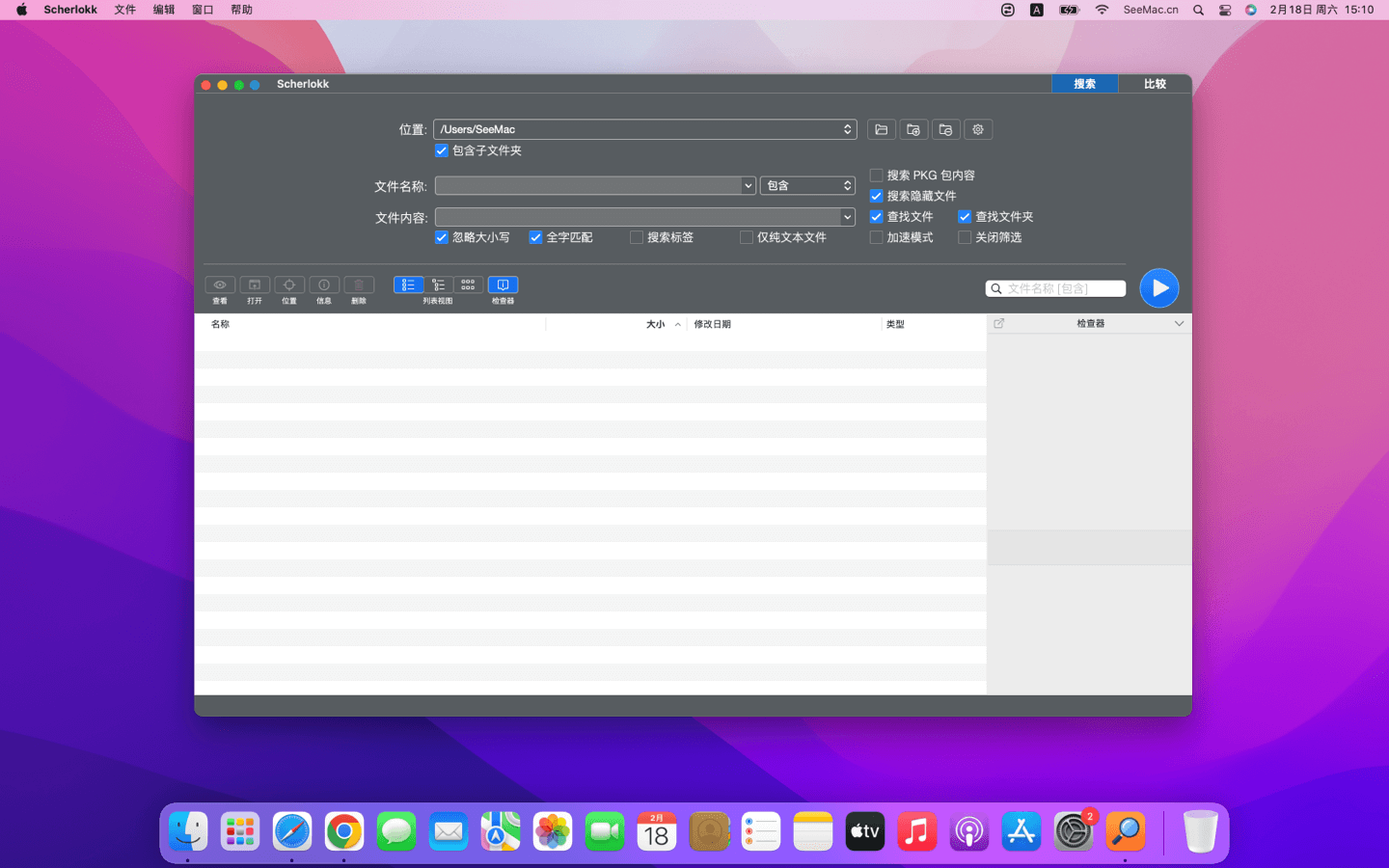 Scherlokk 是一个闪电般的快速文件搜索实用程序,可用于精确,可靠地搜索每个符合搜索条件的文件。音乐、视频、图片、书签、文档等可以快速轻松地找到。可以在任何内置磁盘,便携磁盘(存储卡,U盘),网络驱动器(AFP,SMB,FTP)等地方进行搜索。支持搜索隐藏文件和系统文件。该文件甚至不需要通过 macOS 进行索引即可被 Scherlokk 找到。
