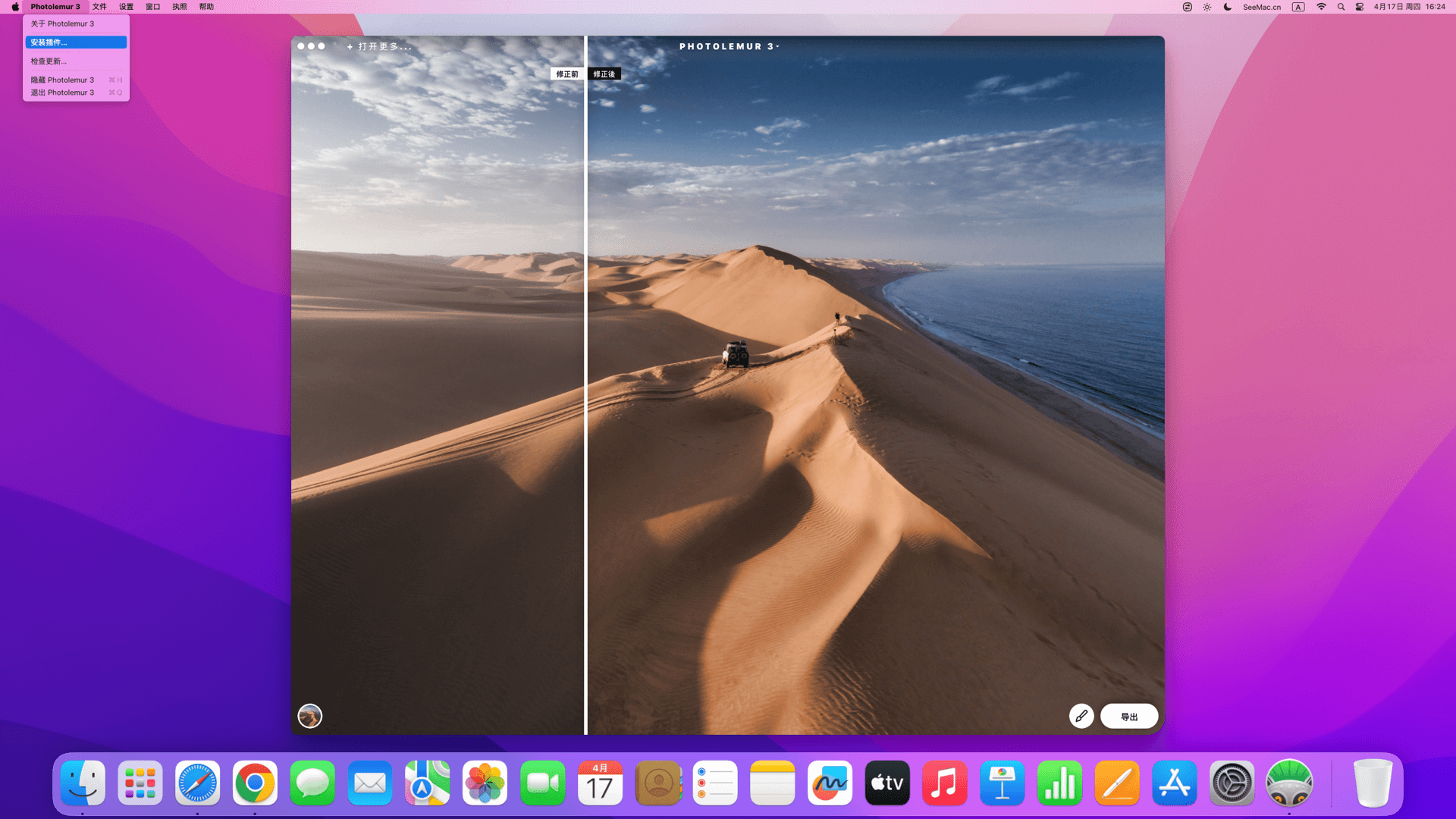 特别提醒:如果你想将Photolemur 3安装成PS/LR插件使用,打开软件,在左上角顶部菜单栏点击Photolemur 3 -> 安装插件…即可(如截图)
