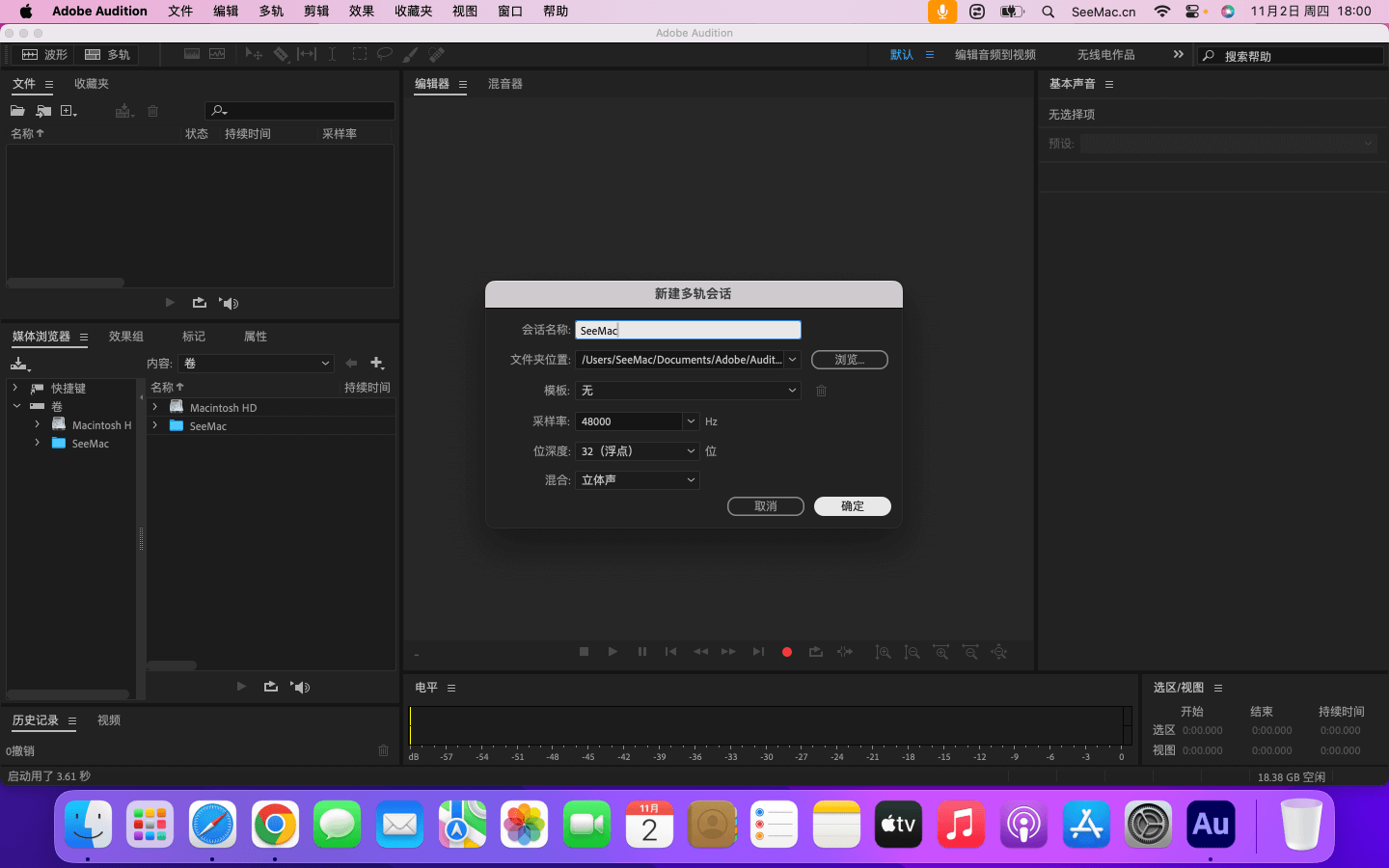 Adobe Audition 2020 for Mac 破解版是Adobe公司出品的一款专业数字音频编辑软件,提供先进的音频混音、编辑和效果处理功能,专为音频和视频专业人员设计。新版Audition 2020 增加降噪和减少混响效果,多轨剪辑改进,添加或删除空轨道,回放和录音改进以及第三方效果迁移,功能更加强大好用。Adobe Audition简称AU,无论是要录制音乐、无线电广播,还是为录像配音,Audition都能帮到您。它可提供先进的音频混合、编辑、控制和效果处理功能。 最多混合 128 个声道,可编辑单个音频文件,使用 45 种以上的数字信号处理效果。