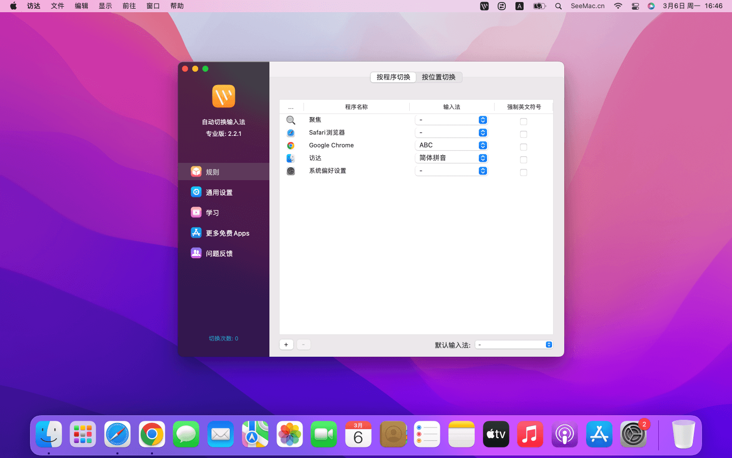 在 macOS 中,只能通过切换上一个,下一个输入法来进行切换,《自动切换输入法》支持,使用快捷键,一步切换到指定的输入法,准确高效。