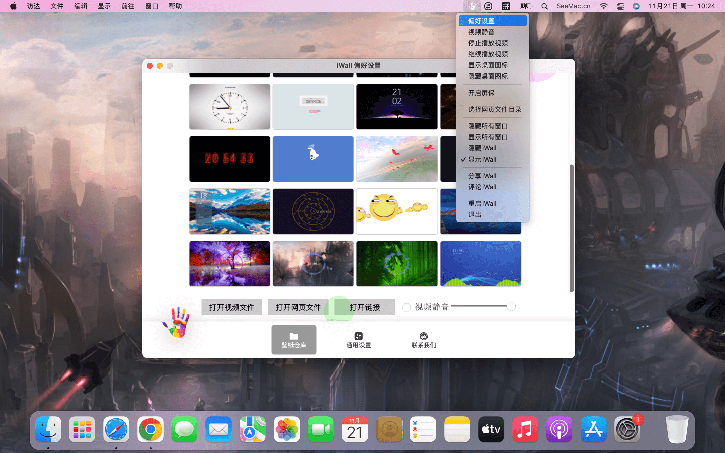 iWall是一款非常流行的可以使用任何格式的漂亮视频(无须转换),直接支持4K,8K超高清视频源,音频(可视化功能),图片,动画(gif),程序,网页,网站,网址,url做为您的动态桌面软件,并且可以进行交互。请注意:这是唯一可以交互的动态桌面。充满各种类型的资源,无穷无尽。在线离线任意设置,并且可以自己简单制作各种类型的动态桌面源,录屏支持音视频同步录屏。