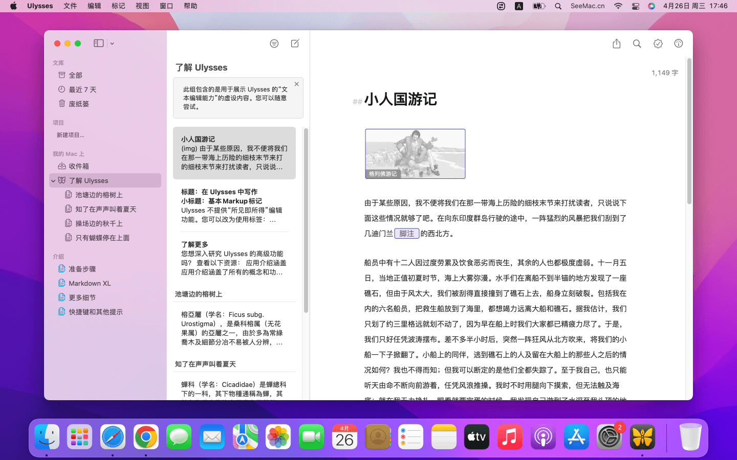 Ulysses (尤利西斯) 是一款强大的具备全新Soulmen写作环境的超强大文本编辑工具,虽然它的定位是写作(写小说,写文章)工具,但是它却可以当作日常笔记本(类似云笔记)使用,为您带来前所未有的文本编辑体验。它结合了MarkDown,Textile功能,支持您将工作导出为不同的文本格式,如PDF,TXT,HTML或RTF。