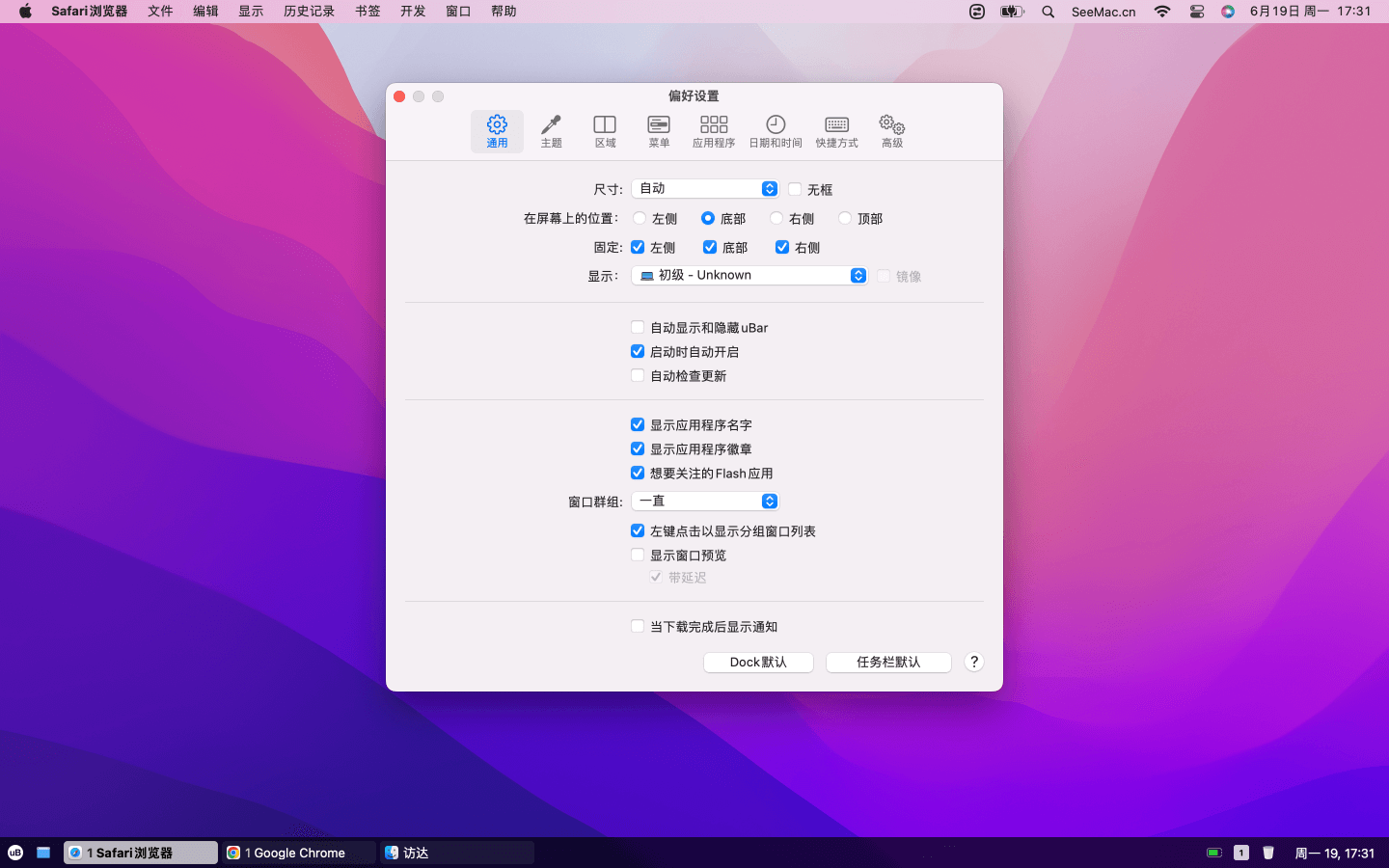 仿windows10任务栏工具 软件介绍 uBar 是一款让你的 Mac 拥有类似 Windows 10 的任务栏的工具,如果你不想要 Dock 栏,还是喜欢 Windows 上的任务栏,那么这款软件就可以帮助你实现这个需求,当然,Dock和任务栏也可以一起使用,话说当初在 Windows 上就有大量模仿 Mac 的 Dock 的软件,如今 Mac 上也出现了模仿 Win 的任务栏的工具!