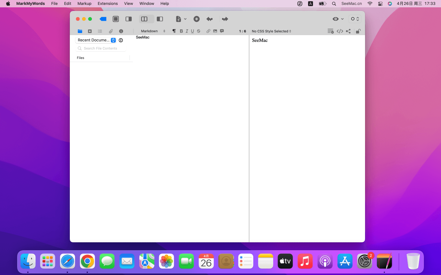 高级Markdown编辑器 软件介绍 MarkMyWords 是一款强大的 Markdown 编辑工具。支持:Markdown + Extra、MultiMarkdown、Textile、Wikitext、BBCode、HTML等语言。内置多种 CSS 样式,并可以使用自己编写的 CSS 样式进行预览。可以导出为多种格式:RTF/RTFD/HTML/DOC/ODT/PDF/Textbundle/Textpack。另外 MarkMyWords 支持无干扰写作模式。