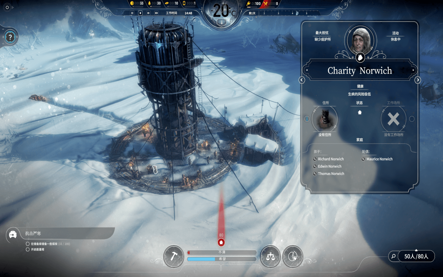 除了你的大本营新伦敦,探索城市外的未知世界也很重要。尽管考察有风险,但它会给你带来有用的情报与珍贵的物资,帮助你增加城市人口。霜冻之地或许还有其他幸存者,他们的命运完全掌握在你的手中。