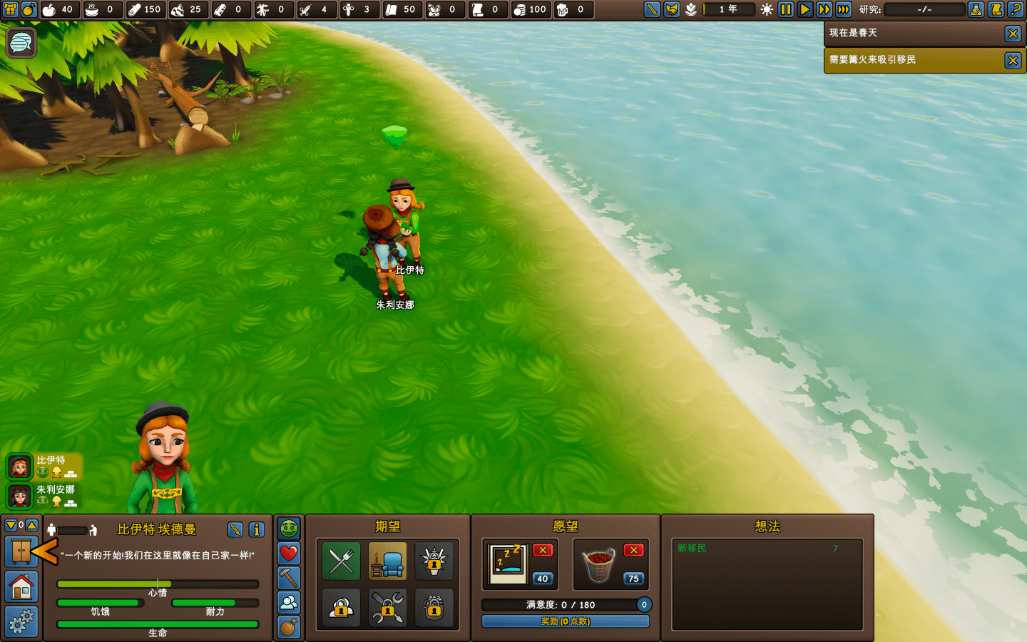 你的殖民者刚登岛时,他们身上只有衣服。你管理控制他们收集材料,建造墙壁、地板和家具。