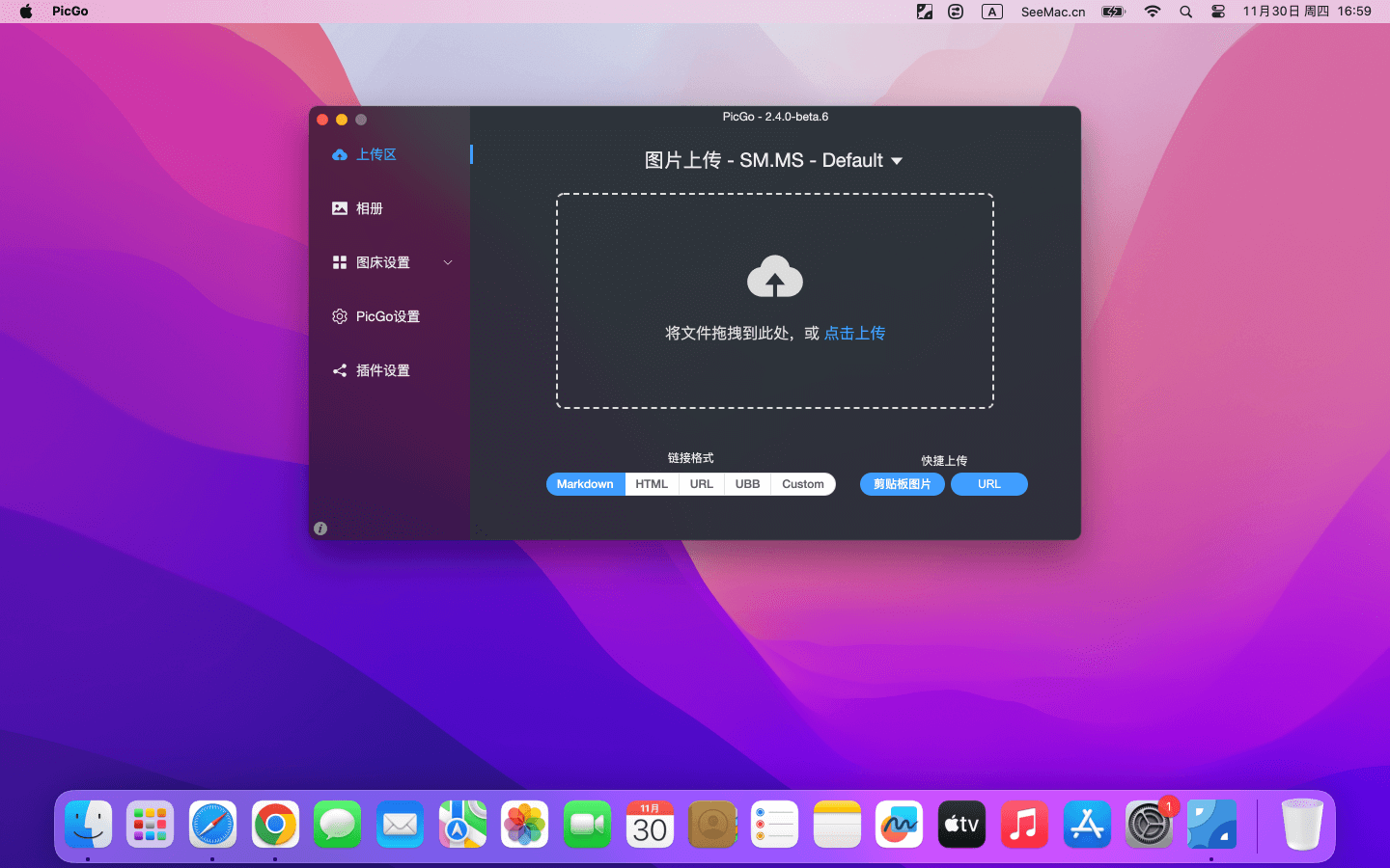 强大的mac图床软件 软件介绍 PicGo 是一款强大的mac图床工具,默认支持微博图床、七牛图床、腾讯云COS、又拍云、GitHub、SM.MS、阿里云OSS、Imgur,方便不同图床的上传需求。支持5种默认剪贴板链接格式:Markdown/html/url/ubb/自定义链接格式,让你的文本编辑游刃有余。2.0版本开始支持插件系统,让PicGo发挥无限潜能,成为一个极致的mac效率工具。