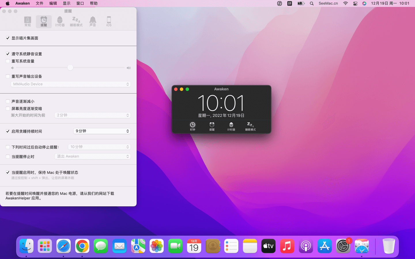 Awaken 可将您的 Mac 变成顶级音乐闹钟与睡眠计时器。
