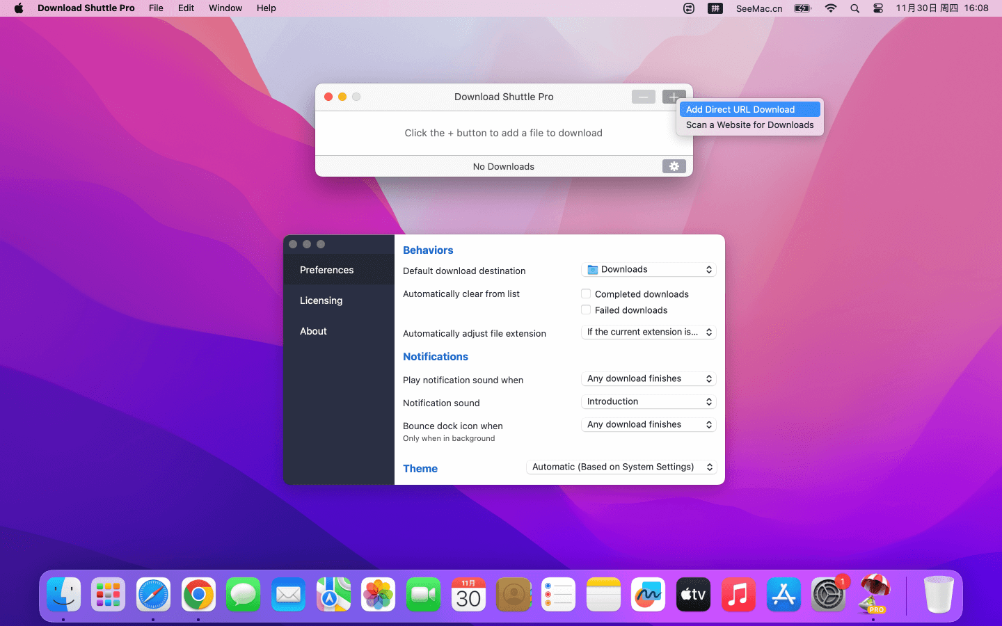 Download Shuttle 是一款适用于 Mac 的下载加速器。它智能地将文件分块下载,并同时下载它们,与使用浏览器下载相比,可以提高整体传输速度。Download Shuttle Pro 版本可以探测网站上可以下载的媒体资源,比如YouTube,Vimeo,DailyMotion等网站视频探测下载。