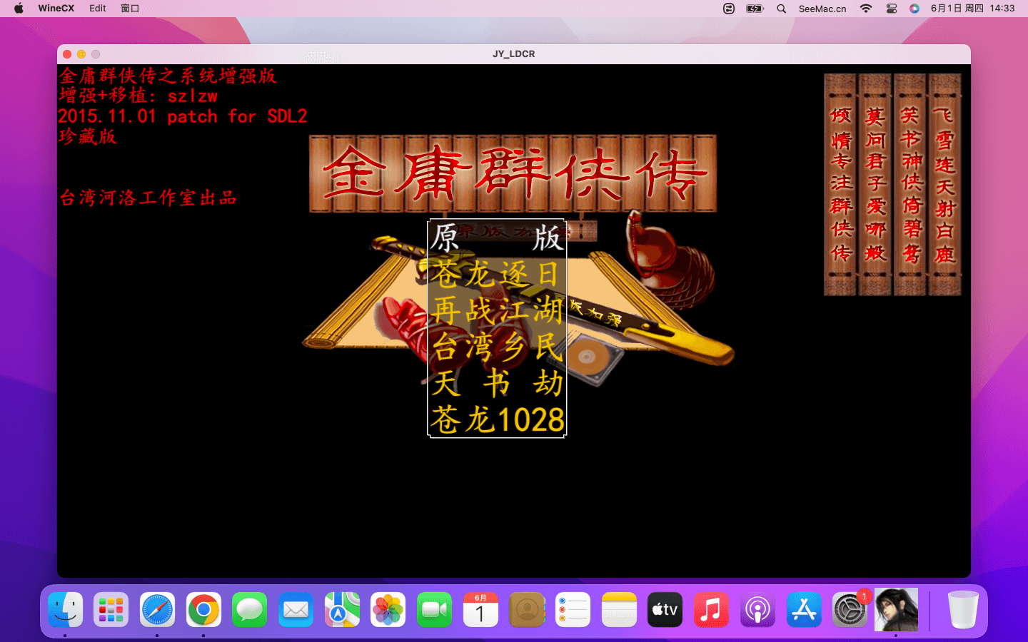 支持MOD包含了原版、苍龙逐日、再战江湖、台湾乡民、天书劫、苍龙1028共6个游戏版本,名为系统增强版,也就是基本只对原游戏各种BUG和繁琐的操作进行改良优化,所以基本没对里面的剧情、数据做改动。