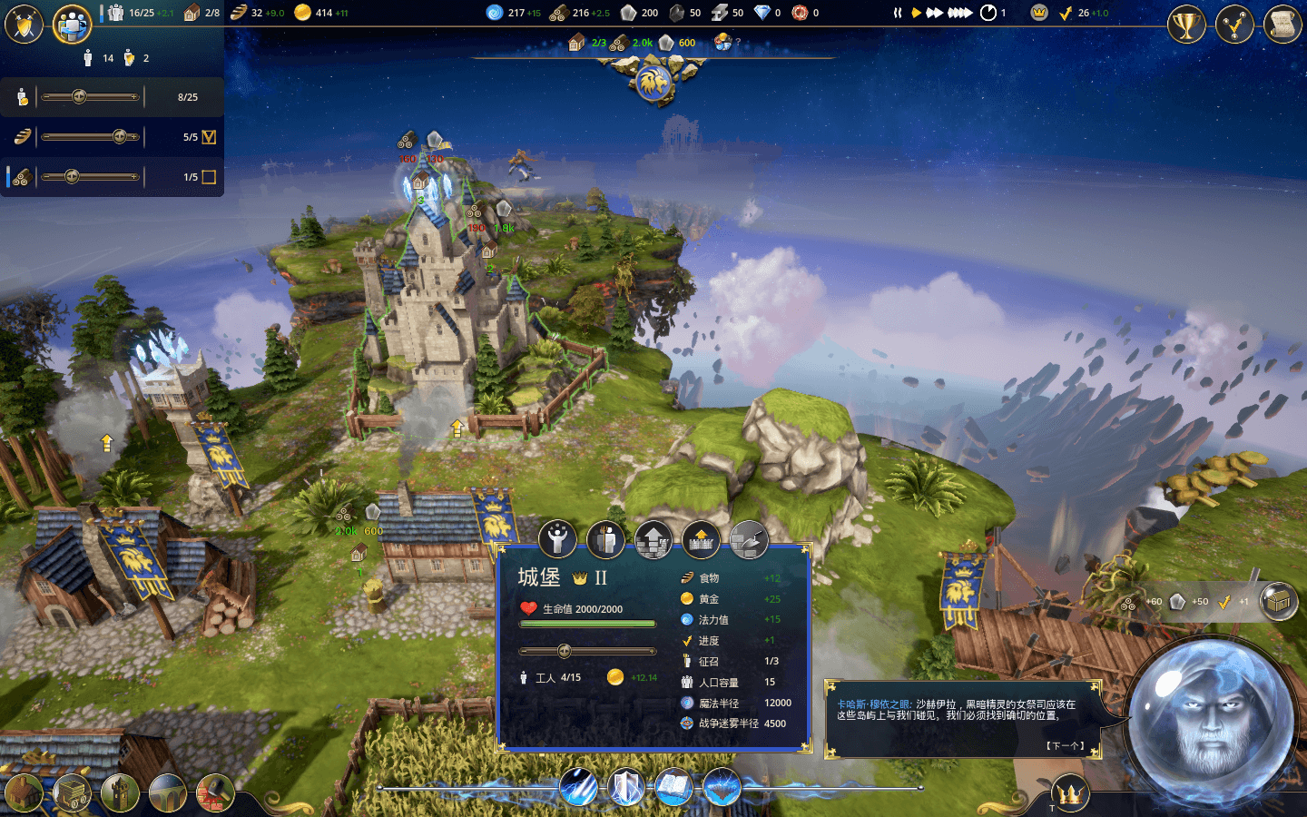 你将扮演魔法师领主,拥有自己的城堡、塔楼和小小领地。你可以用自己的独特魔力,在这个程序化生成的世界里探索,连接漂浮的地块,扩大自己的王国。