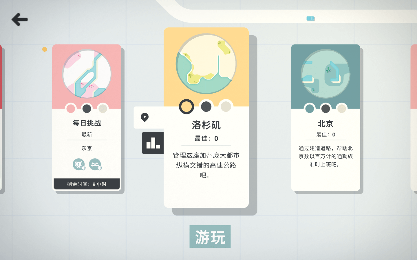 Mini Motorways 是关于在城市发展中设计道路网的策略模拟游戏。按部就班地建设交通网络,创造繁华的大都市。重新设计您的道路并放置高速公路,让每个人都能到达目的地。你能让城市运转多久?