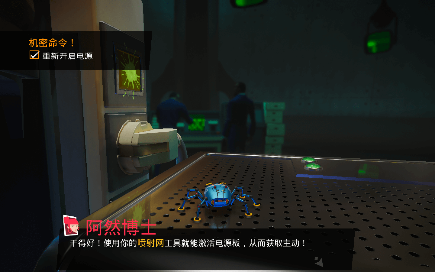 “spy”和“spider”的结合 游戏介绍 无所不能的机器特工 Agent 8,该拯救世界了! 在这个复古的虚构宇宙中,英国间谍组织“EP-8”研制了 Agent 8,这可是全球最精密的微型蜘蛛机器人!你要化身这个用尖端技术打造的小小间谍,利用一身精巧装备爬上墙壁、穿过缝隙、切开钢板、毁坏终端,破解重重机关,粉碎邪恶势力的阴谋。