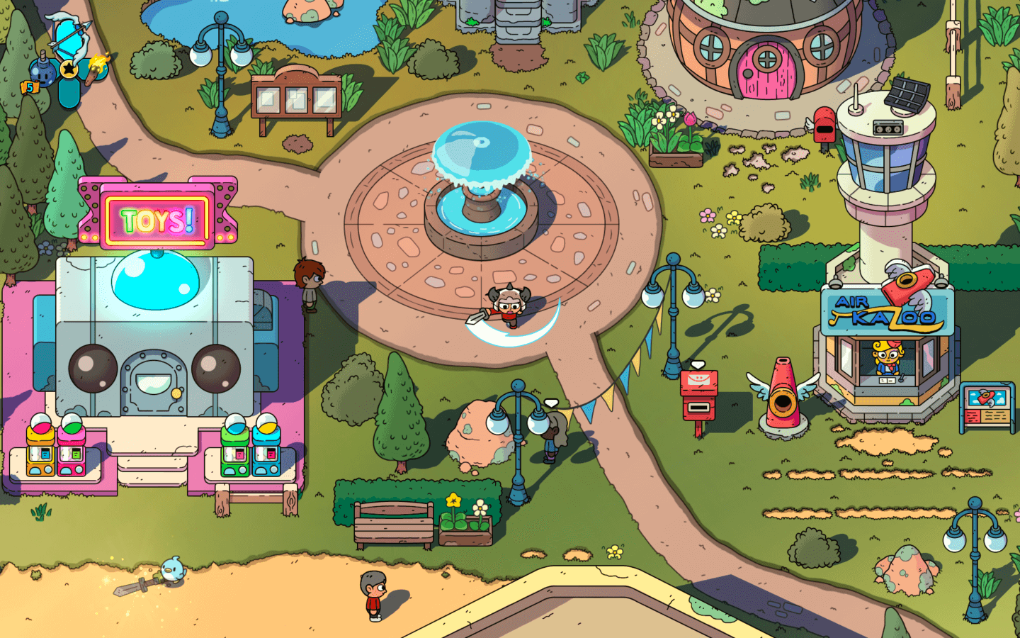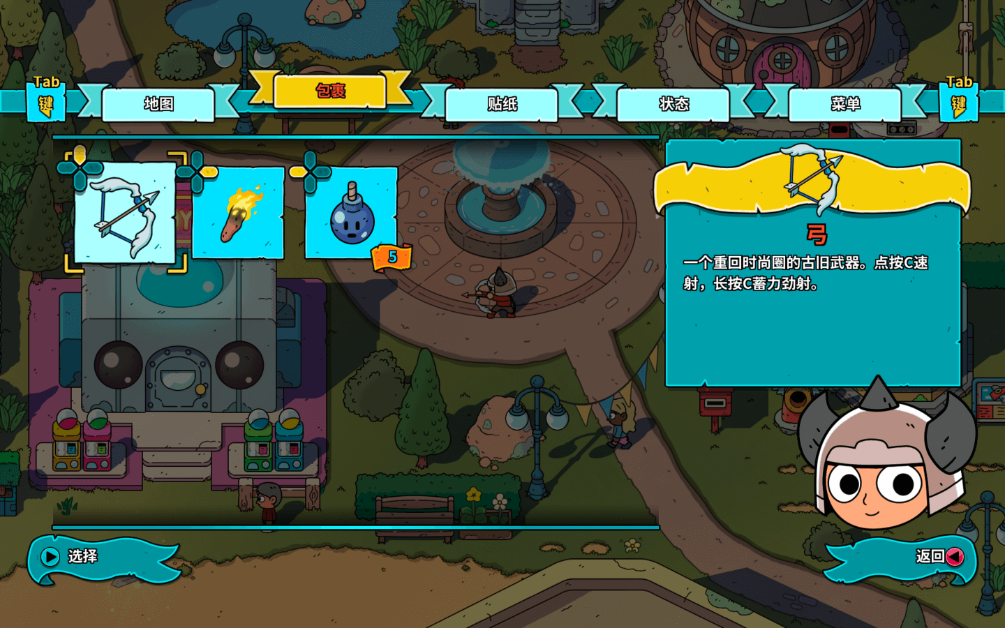 武器、道具和贴纸,如虎添翼:手上的武器既有传统的利剑弓箭组合,也有不那么常规的黑胶唱片飞盘、魔法高尔夫球棍和来自天国的大脚丫。挥舞它们,将墨魔大军击溃吧!收集并装备贴纸可提升角色能力,为装备附魔,让你在面对那邪恶巫婆时底气十足。