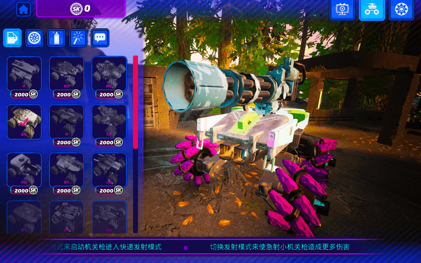 在ShockRods,你可以全方位定制你的巨大的战争机器。 更改您的车型,颜色,车轮,贴花和图案,设定一系列嘲讽对手的开场白和音效,当你你击败你的对手时,你还可以设置更多动作来炫耀你的天赋和风格。根据你在战斗中的表现你将获得相应数量的货币,你可以用它来解锁任何个性化内容和皮肤。