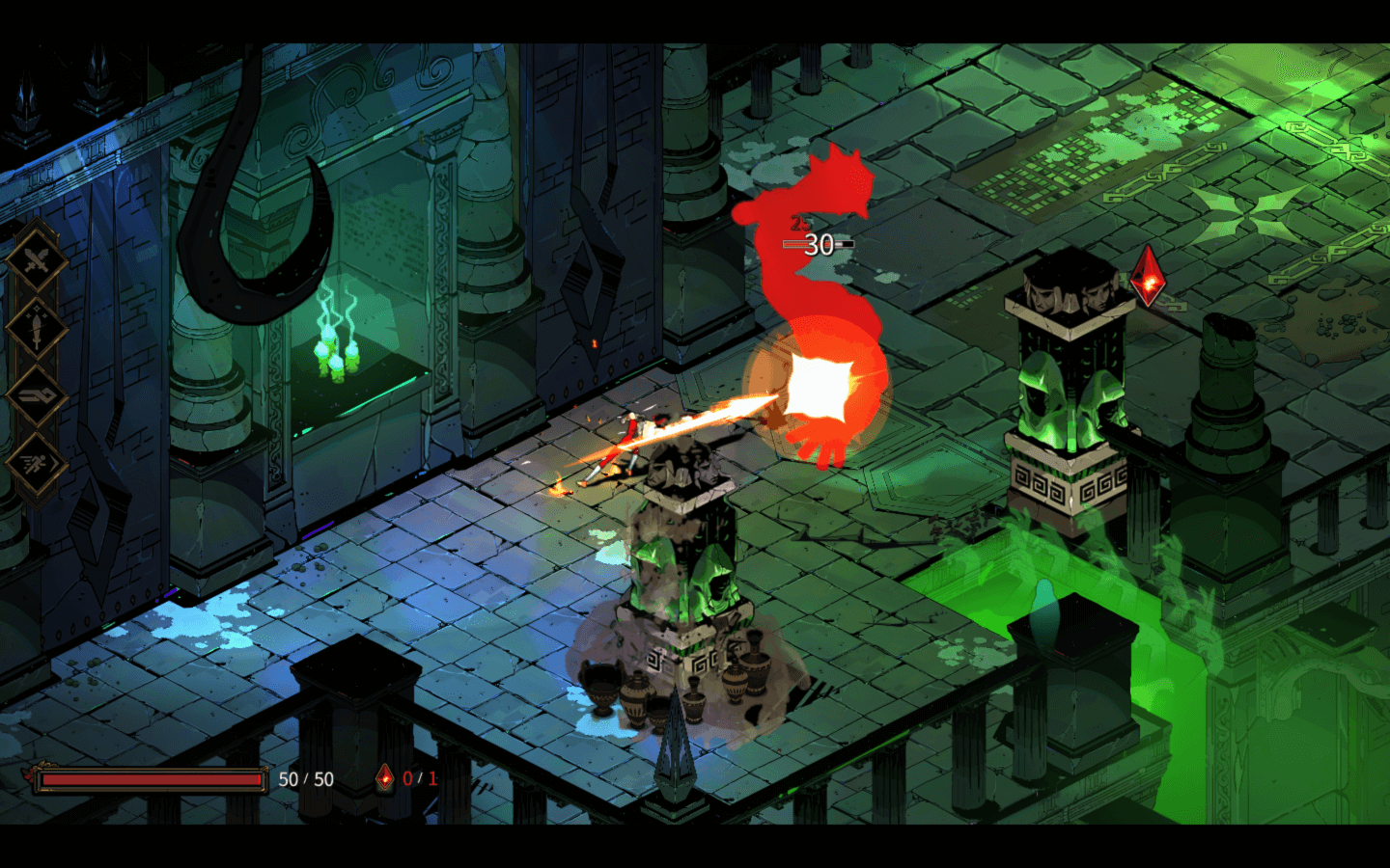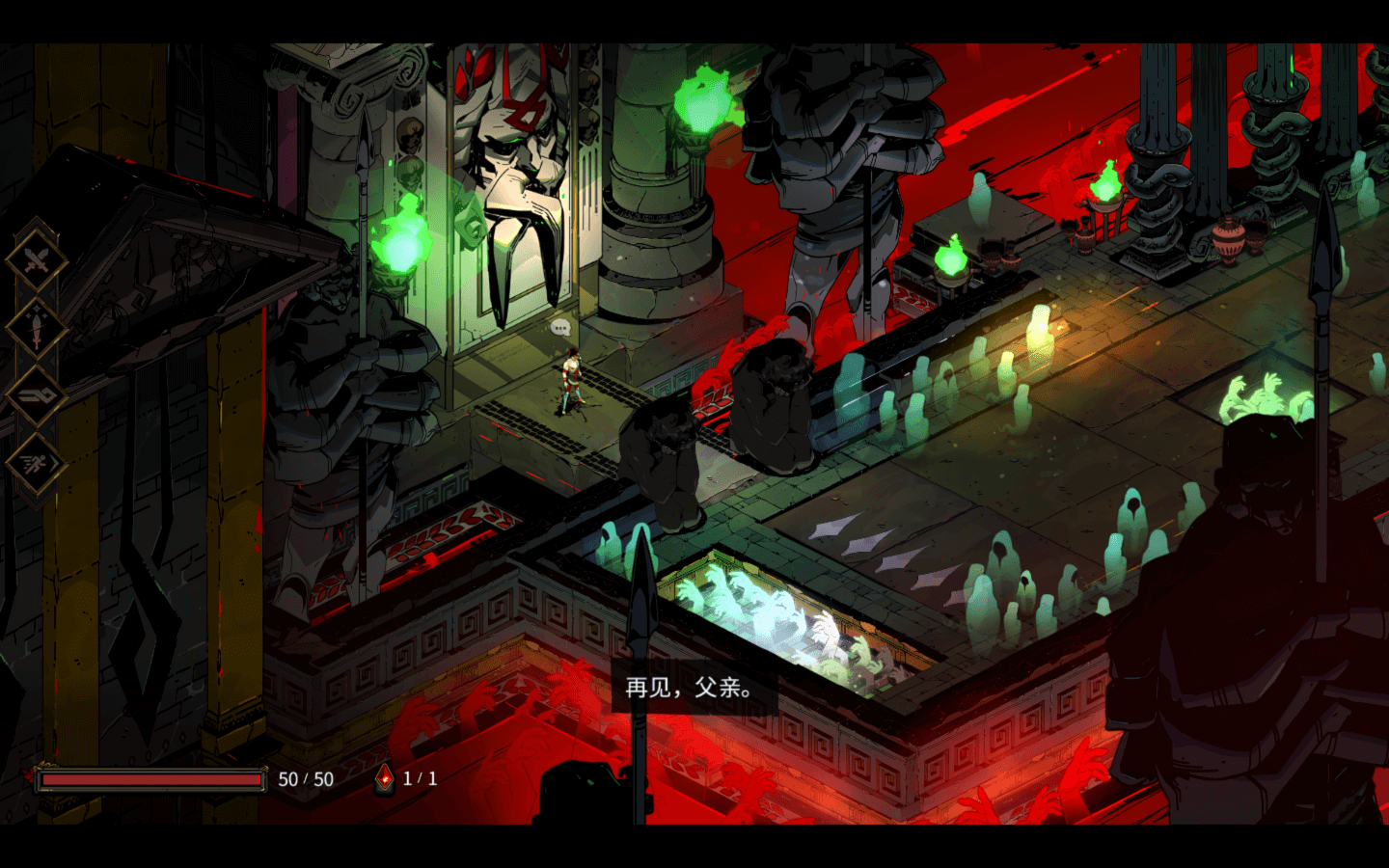 Supergiant 各类游戏内容丰富、大气磅礴以及游戏和故事叙述相结合的特有风格,在这款游戏中表现得淋漓尽致:壮观的手绘冥界环境和令人胆寒的原创配乐,营造冥界阴森恐怖的氛围,让人身临其境。