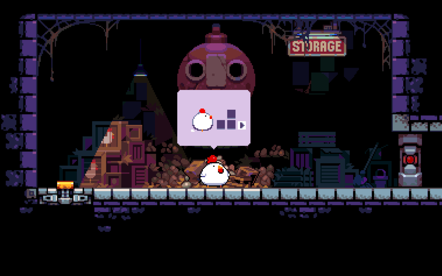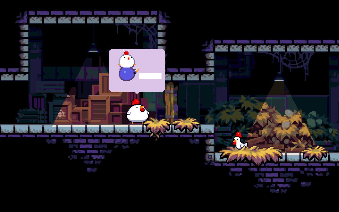 游戏中玩家控制着会下炸弹的可爱小白鸡,炸弹的功能非常多,你把炸弹踢出去能消灭敌人,炸弹能够触发机关发现隐藏关卡,还能够炸开墙壁找到通关道路,炸弹一直堆叠起来能让你到达很高的地方,来通过复杂的关卡设计,总之炸弹鸡没有了炸弹就只是烤鸡了,可见炸弹有多重要。