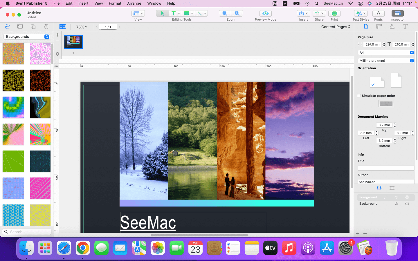 简单好用的平面设计软件 软件介绍 Swift Publisher 是一款平面设计软件,最大的亮点就是让用户方便高效的创建桌面排版材料,如折页,手册,宣传单,商业名片,封面,小册子,日历,信封等等。内置丰富的模板资源库,包含了500多个预先设计好的模板,可以根据需要进行简单修改即可发布。