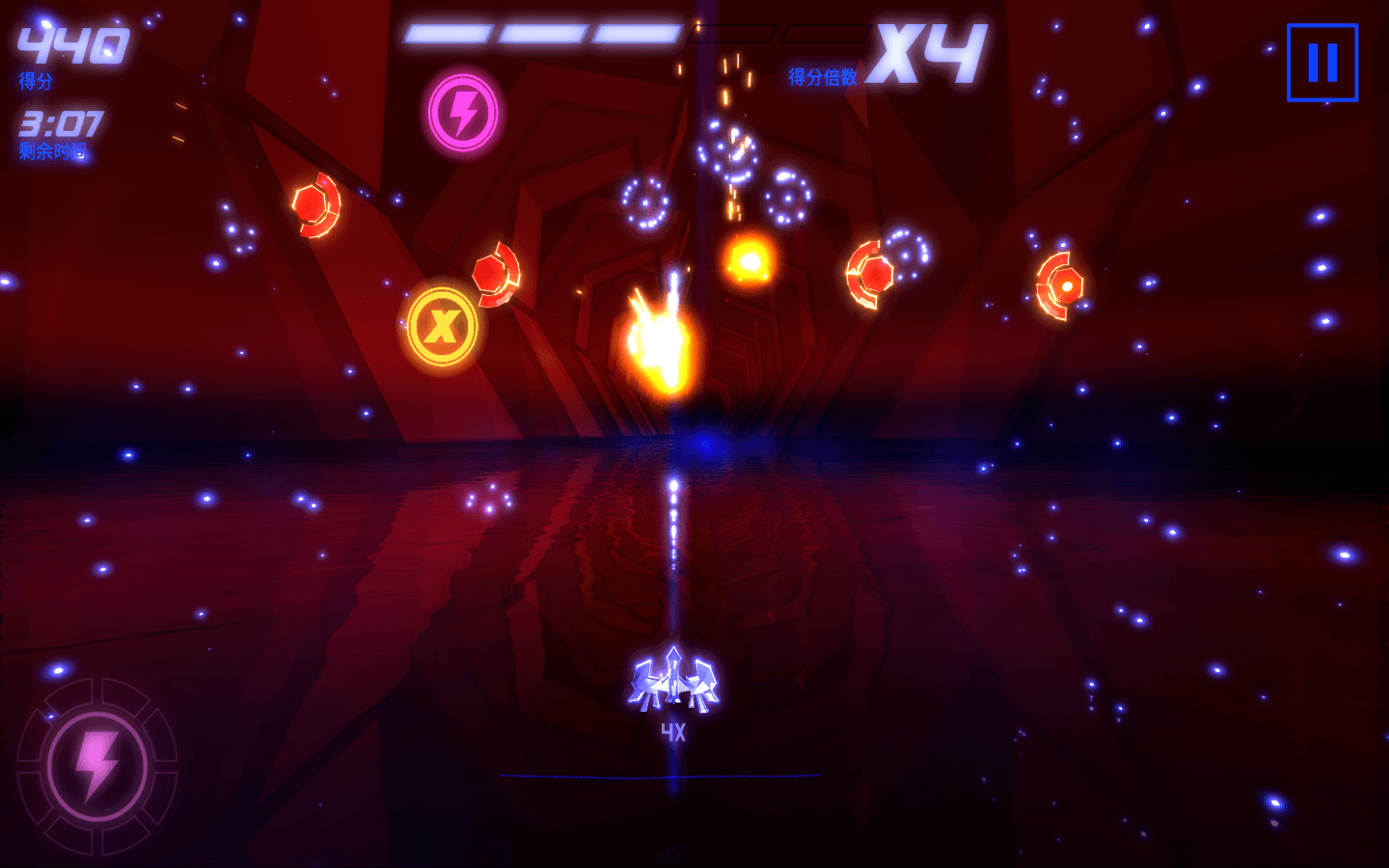 释压模式可让你体验经典射击(SHMUP)风格的动作类游戏,游戏中的敌人和攻击随着音乐节奏而动。累计的得分越高,音乐越动感,与歌曲的互动也就越自然、越疯狂。当然,你也可以与其他玩家竞争,看谁夺得最高得分。