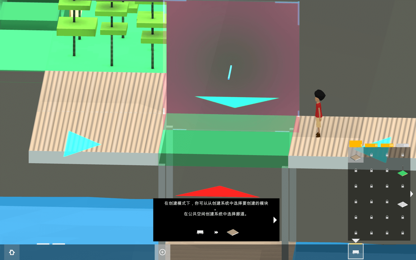 目前游戏有两种模式可供游玩,包括沙盒模式和挑战模式。在沙盒模式中玩家可以自定义平面的大小,可以建造任何游戏内有的建筑,给予玩家发挥想象力的巨大空间。你也可以定义一个超大的平面,在里面建造你的大型社区。而在挑战模式里玩家会被赋予一个目标,且只能用指定的建筑去实现,非常具有挑战性和游戏性。