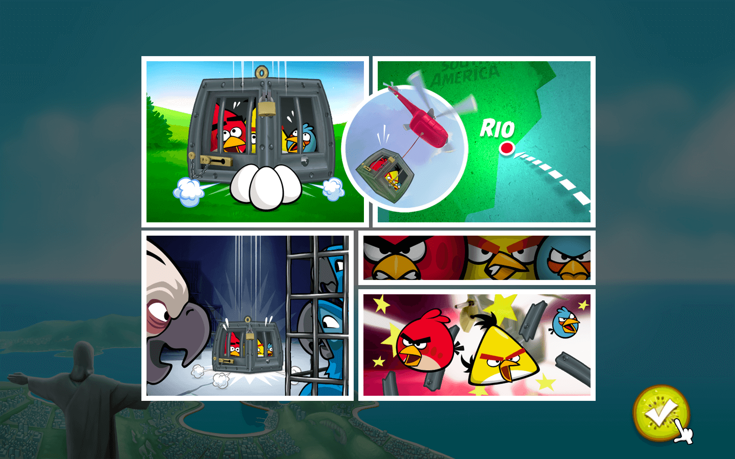 这回的《Angry Birds Rio》,游戏保持了系列一贯的画面风格,玩家可以在游戏中看到那几只无比熟悉的Angry Birds。同时借助电影内容的游戏场景,玩家在可以领略到电影《Rio》的一部分剧情。在游戏的配乐方面,则是变成了富有拉丁美洲音乐要素的风格,而音效仍保持了系列中Angry Birds的各种叫声。