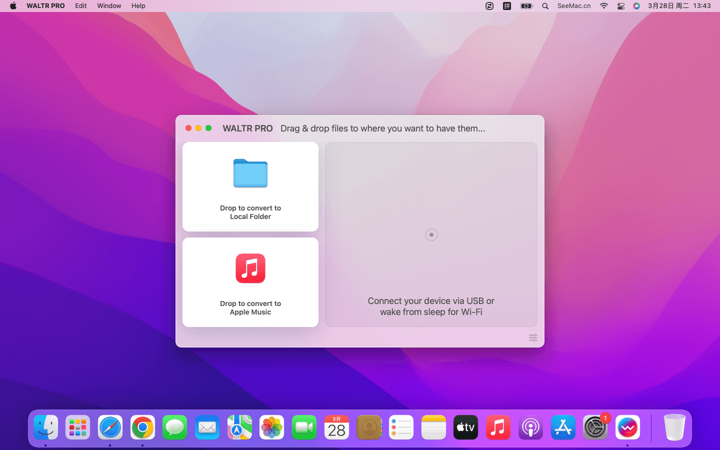 WALTR PRO 是一款出色的转换器,可以将视频和音频文件快速转换为 Apple 友好的格式。是的,您将获得最佳的输出文件质量。没有按钮。无需担心不必要的设置。只需拖放即可在本地转换媒体文件,并将其保存为Apple“尊重”的可读格式,并保存到内部或外部驱动器中。