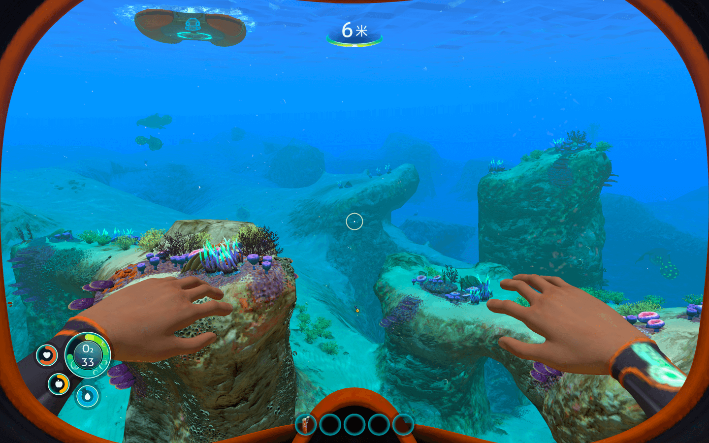 Subnautica 海床采用动态地图生成技术。你可以挖洞来躲避、存储战利品、或者缩短洞穴系统的路程。载具的碰撞,甚至是爆炸生物的冲击波,都将改变世界的外观。