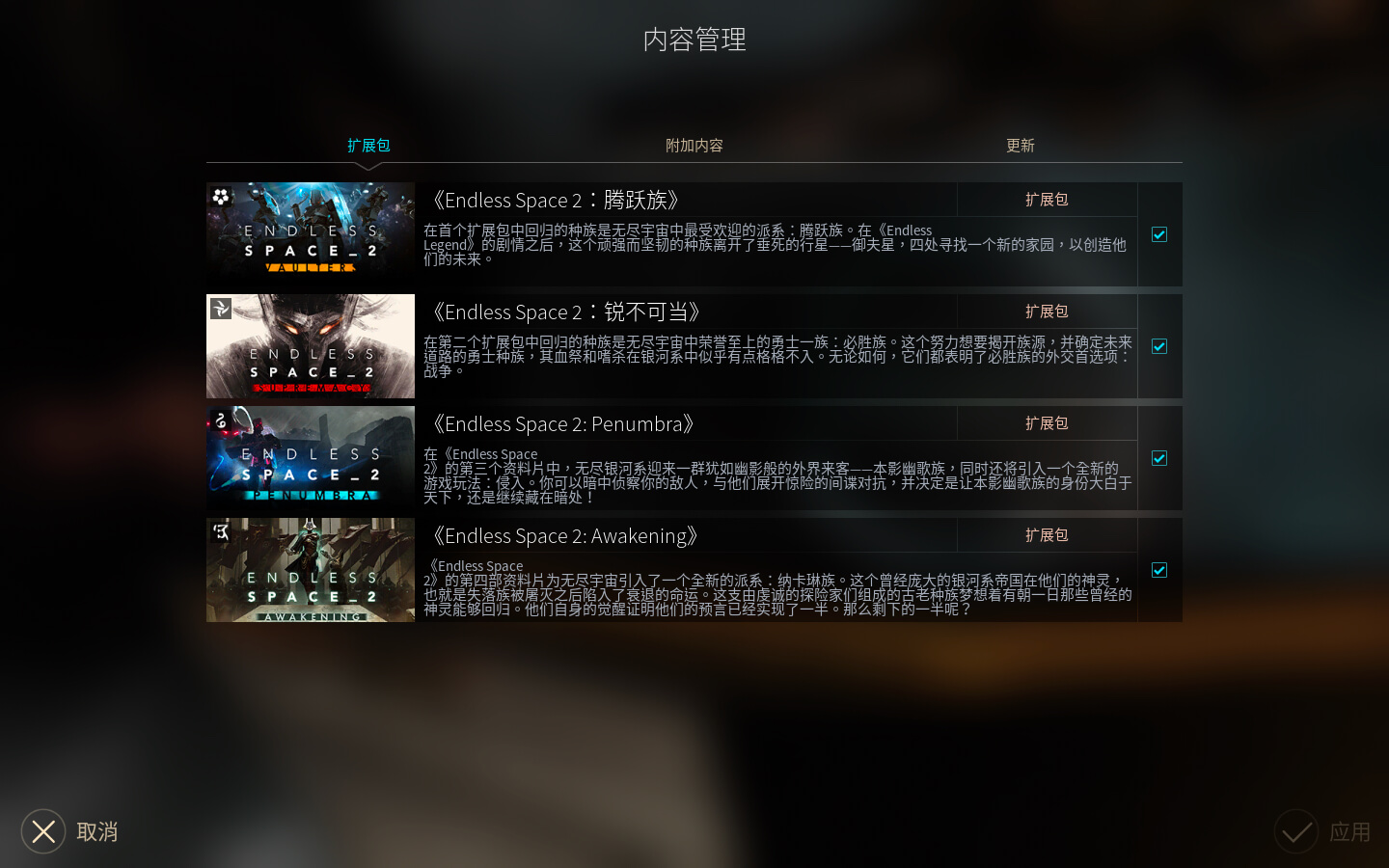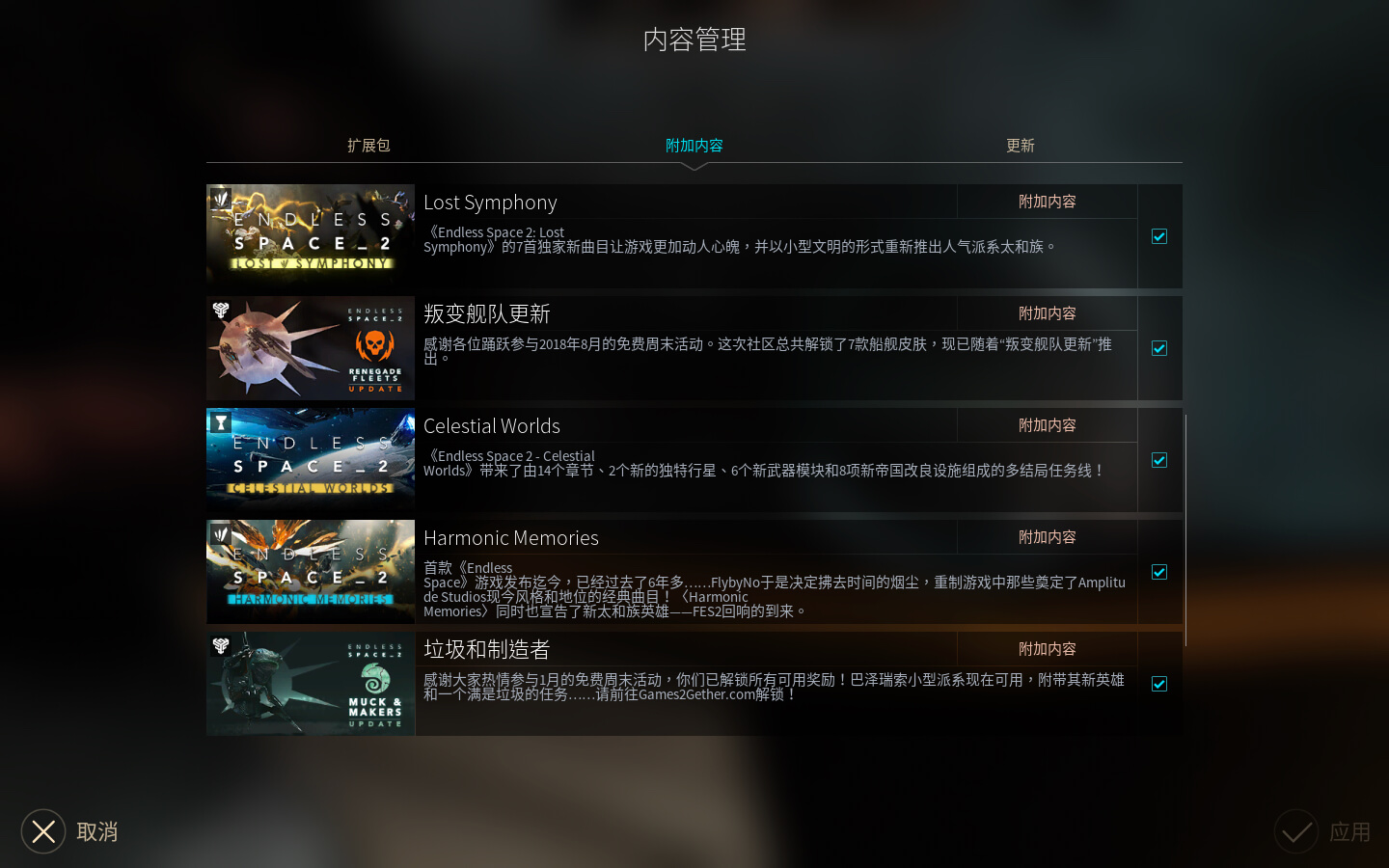 《Endless Space 2》是一款在神秘的宇宙中展开的策略性宇宙史诗游戏。让您在神秘的无尽宇宙中,禁不住就会“再玩一个回合就好”。作为一个文明的领导者,您是否能够大展经纶,实现愿景,建立起最伟大的星际帝国?