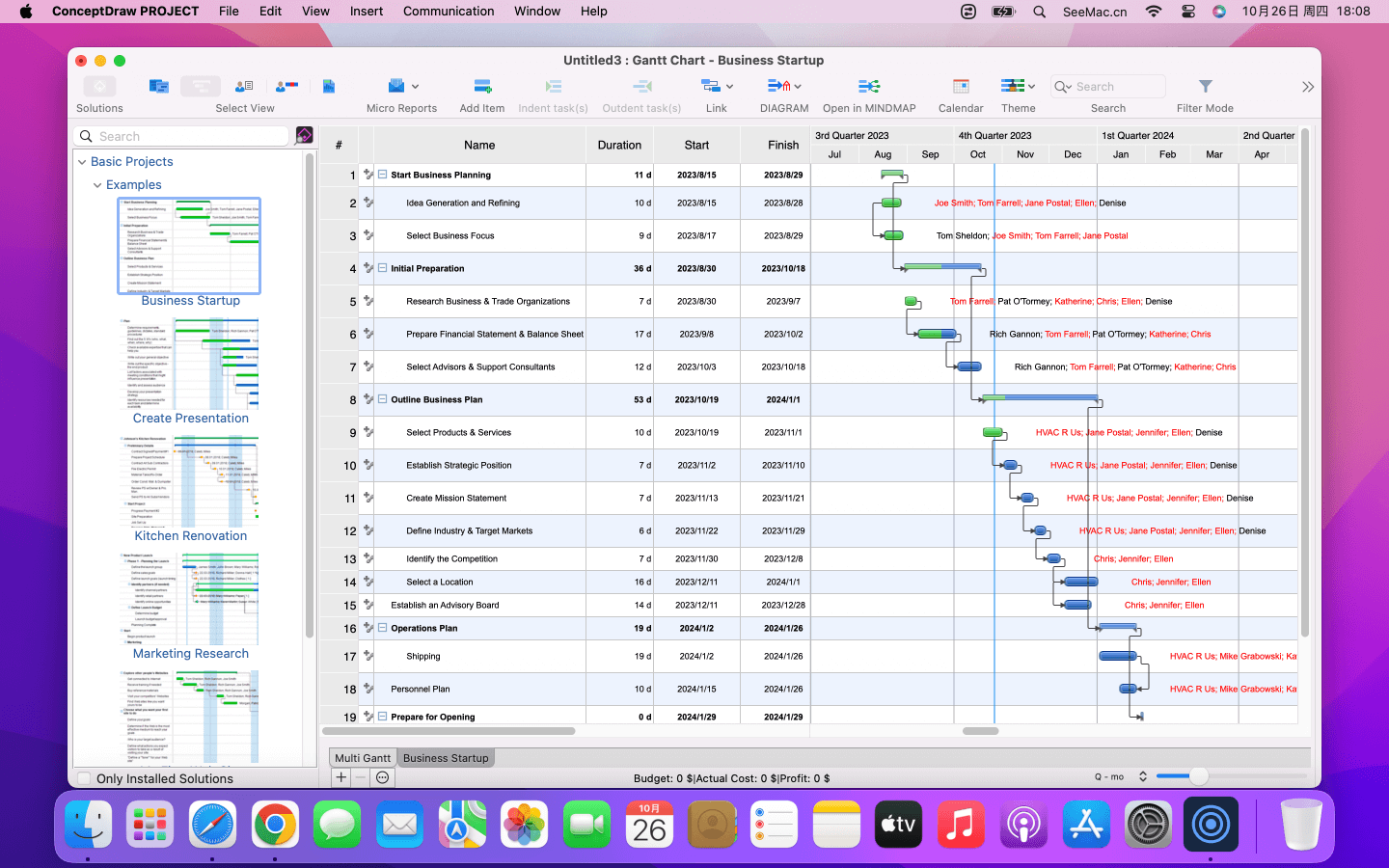 ConceptDraw PROJECT 是一款适用于 macOS 功能齐全的项目管理工具,可提供成功规划和执行项目所需的完整功能。支持的功能包括任务和资源管理、报告和变更控制。通过利用思维导图和数据可视化的强大功能,与其他 ConceptDraw OFFICE 产品的集成有助于改进项目管理,可帮助专业人士更有效地可视化、维护和交流多个项目。