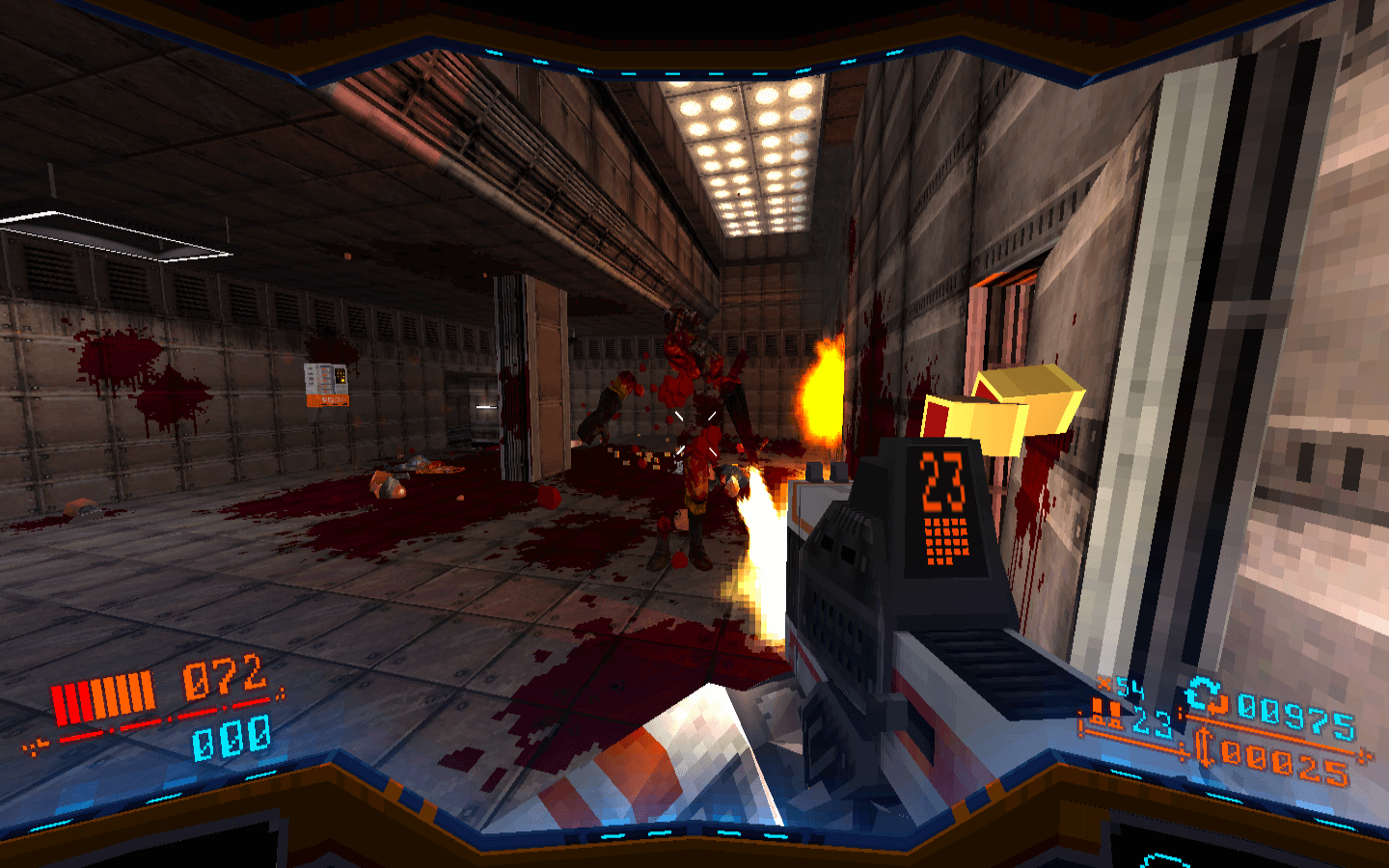 ÜBER-GORE®科技让敌人爆炸成血液喷泉,血色弥漫,永不消散。创造邪恶的死亡艺术品,作为新探索领域的标记。