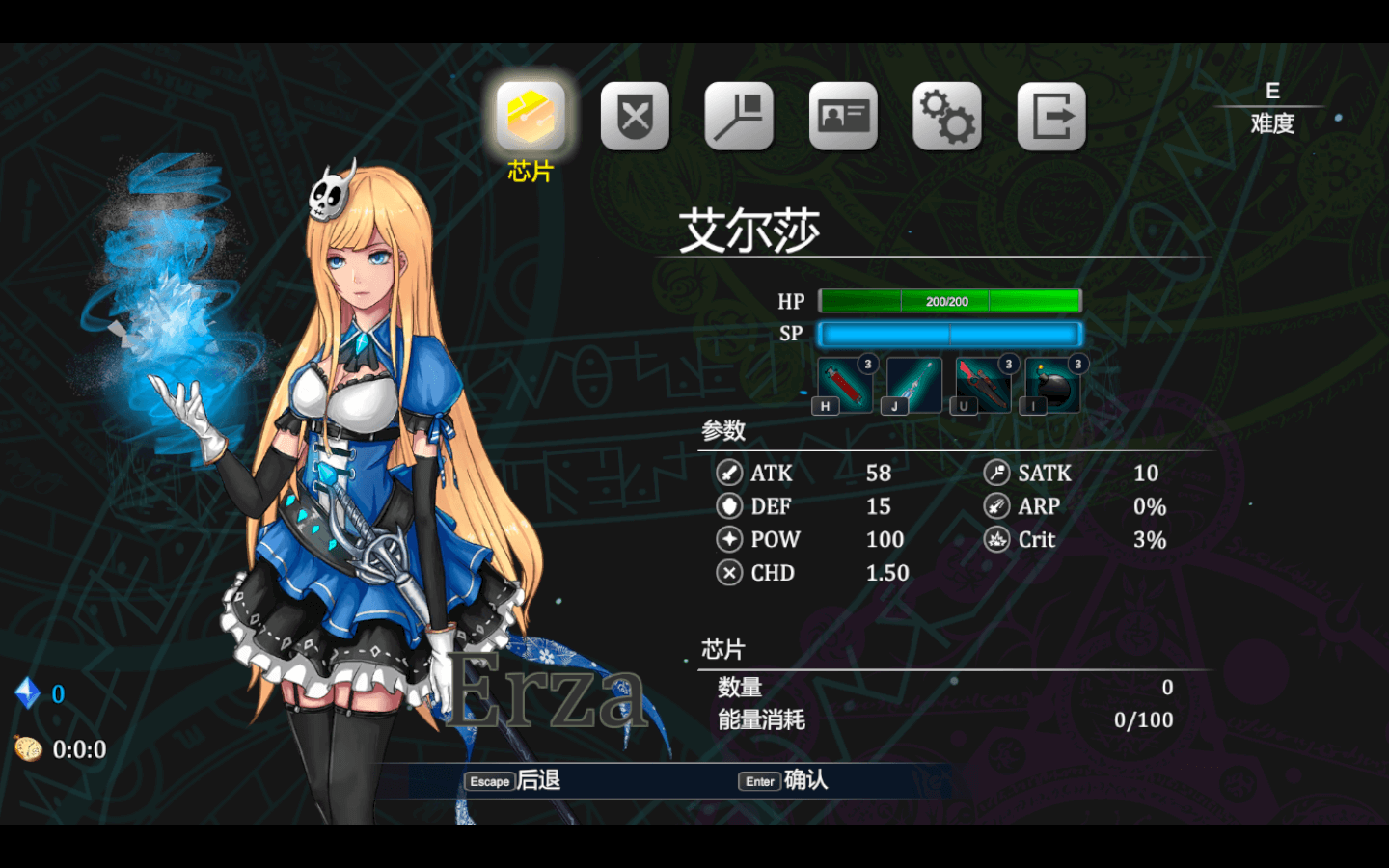 Roguelike+类银河战士恶魔城+日本动画,玩家将在随机模块组合而成的巨塔世界中不停的向上进发,巨塔中拥有各种不同的地理环境,探索与挑战同在。由于主角Erza和魔王的契约,每当Erza死亡的时候都能被魔王使用时空魔法传送回最初设置的地点,在不断的轮回中,弱小的Erza将变得越来越强大,越来越接近挑战的目标。