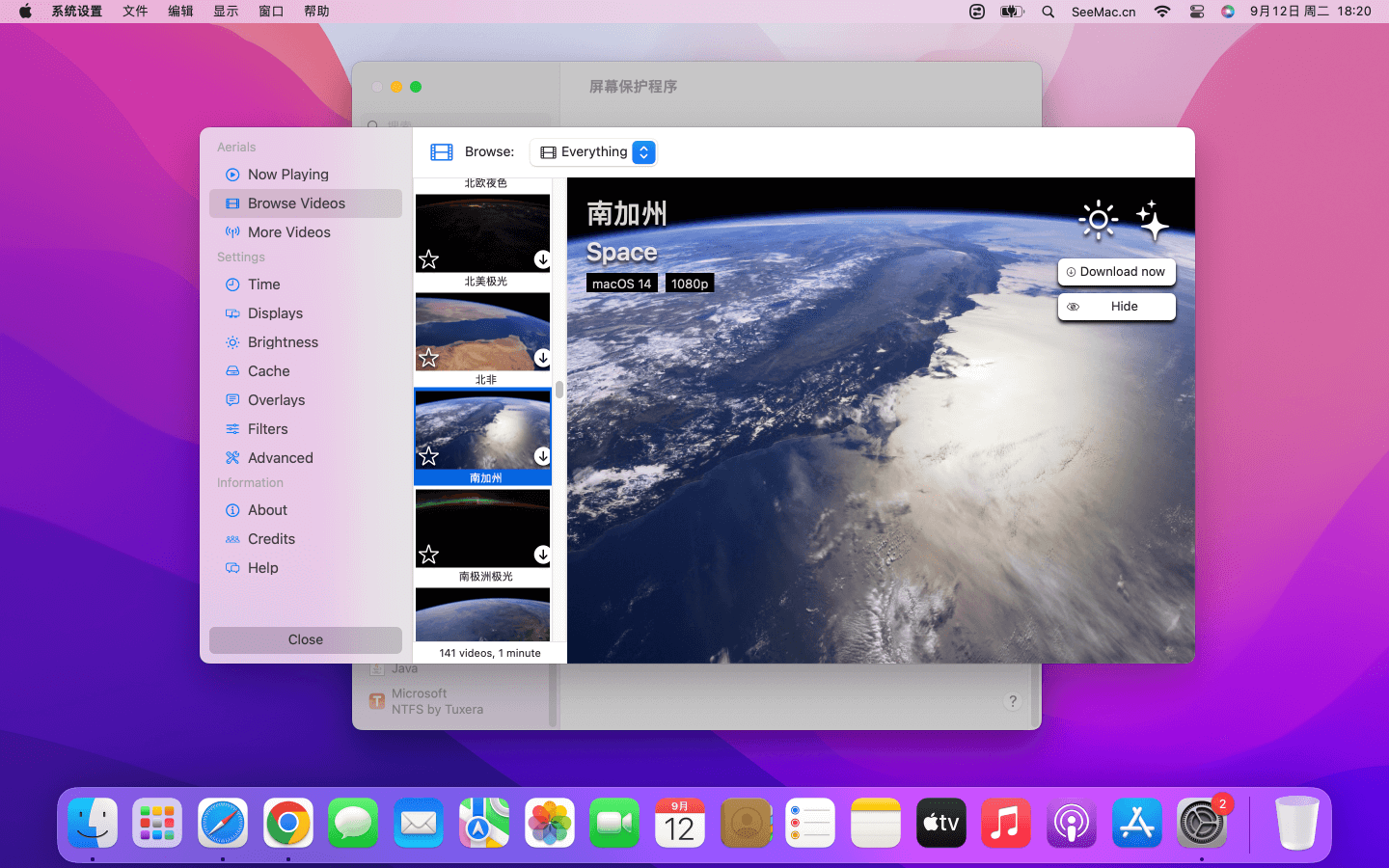 👍 Apple TV 全套屏保 软件介绍 Aerial 是从 Apple TV 屏幕保护程序移植的适用于 macOS 的屏幕保护程序,可将纽约,旧金山,夏威夷,中国,南北极等地拍摄的视频用作mac屏幕保护。从 1.6 版开始新增了海底视频。另外还支持将本地视频设置为屏幕保护。