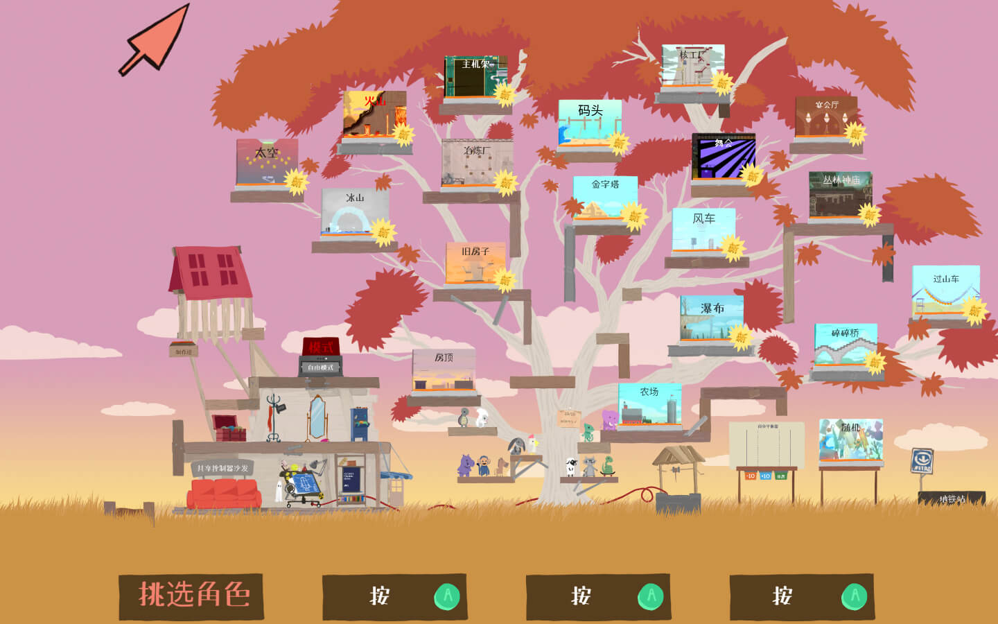 单人只能玩「自由模式」,游戏里记得切换