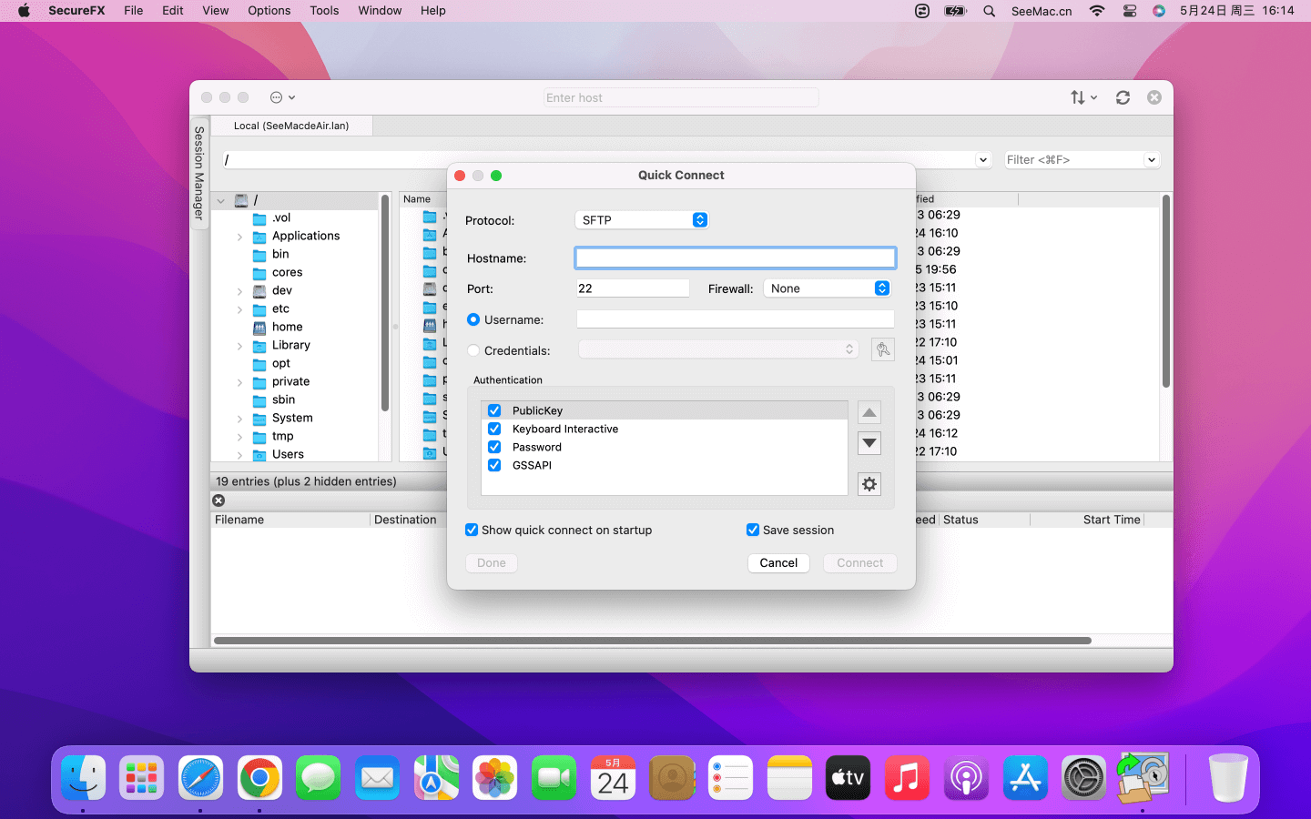 SecureFX for Mac 是一款 ftp/sftp客户端。它支持多种协议:SFTP、SCP、基于TLS的FTP以及FTP。SecureFX 还提供站点同步和自动化等高级功能,以帮助Web设计人员和网络管理员简化日常任务。