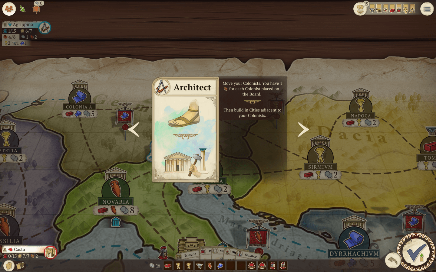 康考迪亚:数字版”是一款以回合为基础的战略游戏,有2到6名玩家为争夺财富和影响力相互对抗。在几幅古代世界地图中的一幅上建立你的贸易帝国。使用纸牌上的行动,计划并执行你的战略以在竞争中获得优势。你的每一个决定都会让你和对手获益。把你的殖民者送到新的城市,无论是陆地还是海洋,建造房屋来扩大你的贸易帝国!
