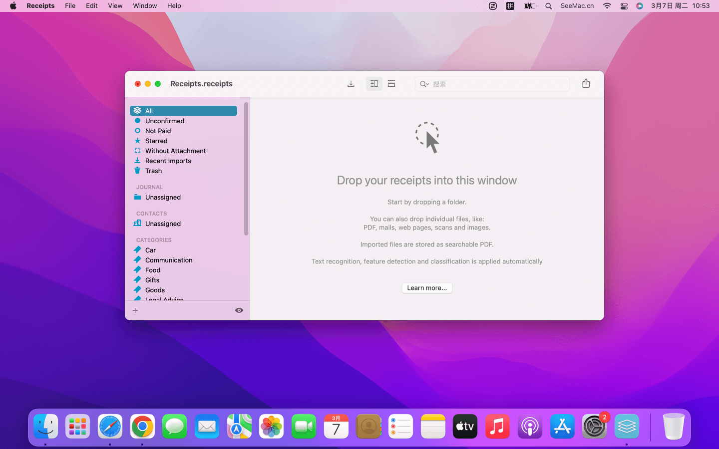 通过PDF/图片提取发票收据 软件介绍 Receipts 是一款通过PDF/图像提取和管理收据发票的应用。可以识别常见的格式,例如 PDF、图片、邮件、网页等,自动识别日期,金额,税金,货币和付款信息。Receipts 将识别的收据自动分配类别和联系人,您可以轻松跟踪付款情况,甚至可以一键付款。带有图表的信息统计提供了有关每个时间段,类别和联系方式的贷方和借方的快速概述。灵活的报告和导出选项使数据易于使用,例如处理费用,记账簿,纳税申报等。另外 Receipts 还可以为扫描仪提供出色的支持。