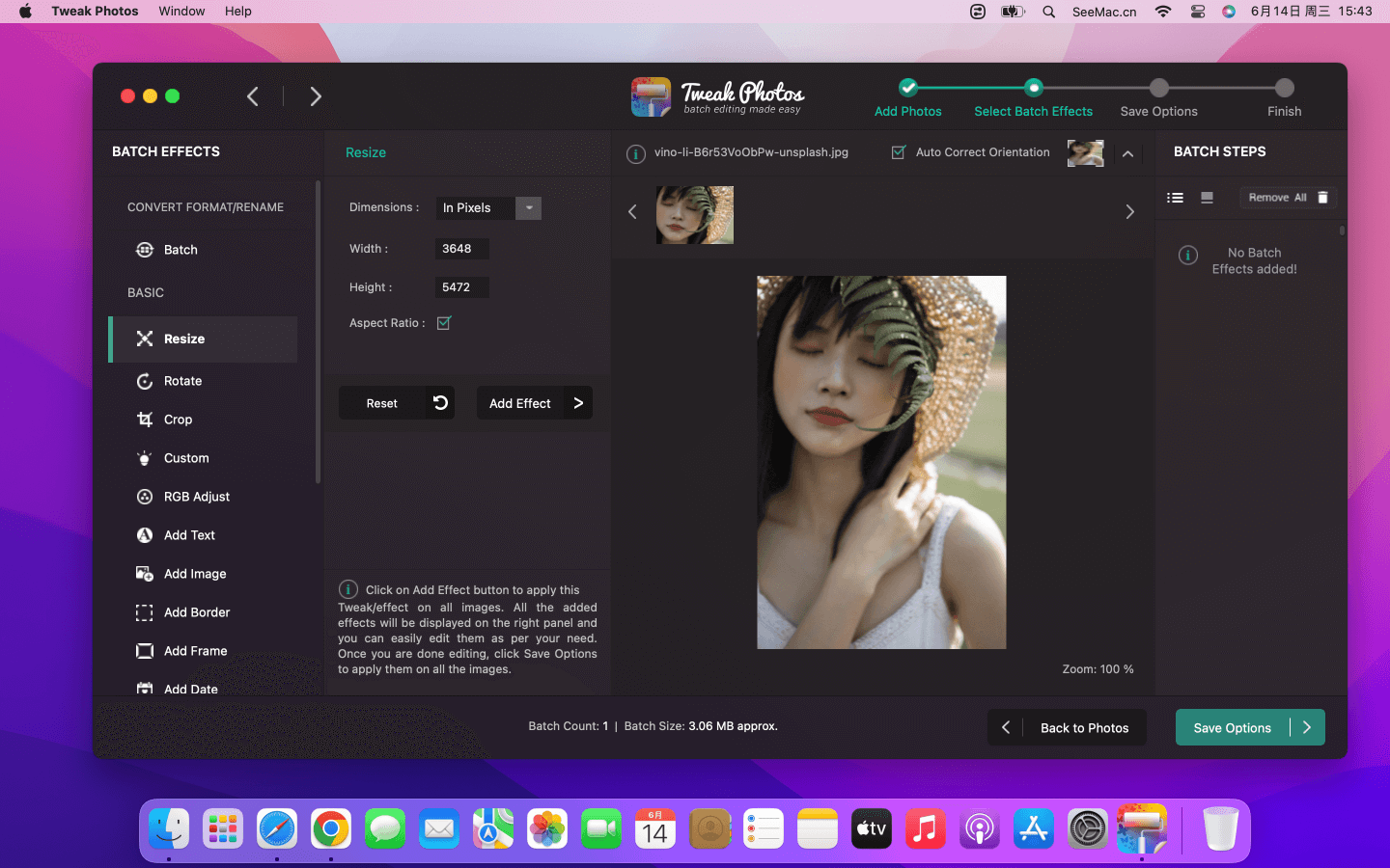 图片批量编辑神器 软件介绍 Tweak Photos Mac破解版是mac上一款非常好用的图片批量处理工具,支持图片批量压缩、自定义处理、照片格式转换、图片格式转换、图片批量重命名、图片批量裁切、图片批量添加水印、图片批量添加文字、图片批量滤镜等等,还可以进行图片大小批量设置,是一款非常强大的多功能批量图片编辑工具