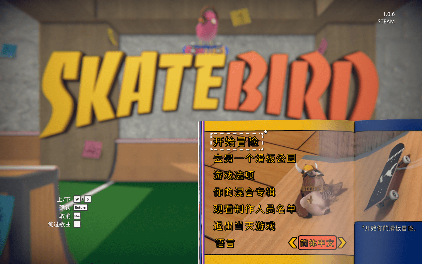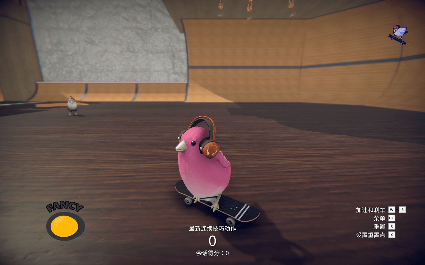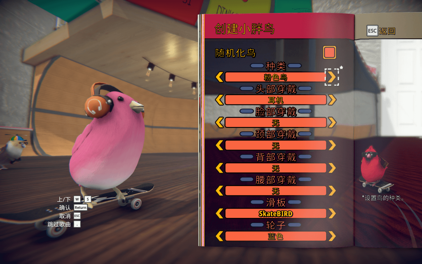 你是一只孤独的小鸟,你的大朋友已经永远地把滑板束之高阁了。他们的工作糟透了,最近他们很少回家和你一起玩耍。你要凭借一只酷酷的滑板小鸟的力量来修复这一切。虽然你很小,但你滑的越多,追随你的就越多,小鸟的滑板世界就会向你敞开的越多。鸟儿们会来拜访你的公园,还能帮你找到更多的公园,并和你一起努力(以某种方式)修复大朋友的生活!而最为重要的是,滑板小鸟总是全力以赴,永不言弃。