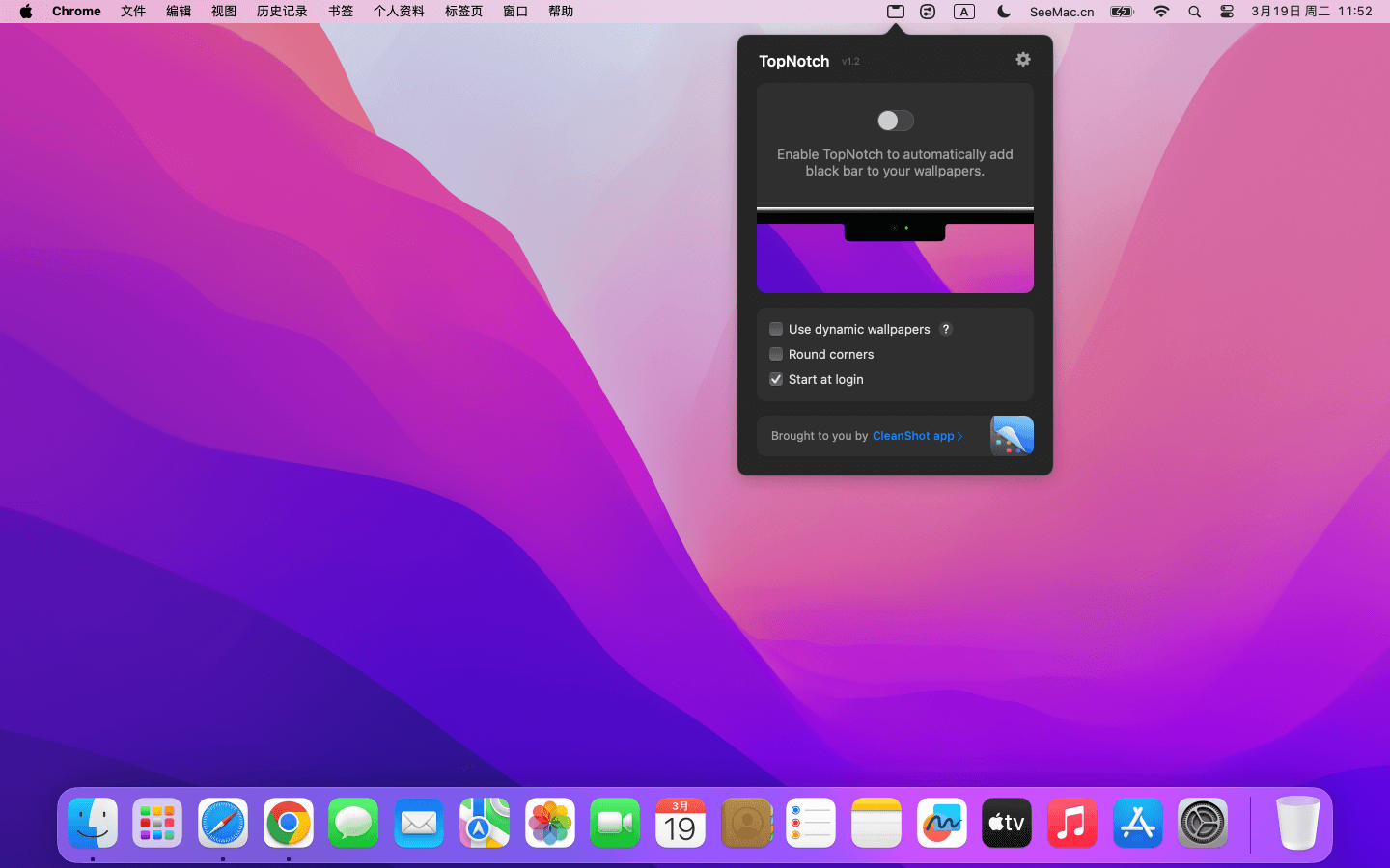 隐藏新款 MBP 屏幕刘海 软件介绍 TopNotch 可以帮助您隐藏 2021 新款 MacBook Pro 的屏幕刘海。TopNotch 支持 macOS 动态桌面壁纸、多显示器。另外 TopNotch 还可以为您的桌面壁纸添加圆角。