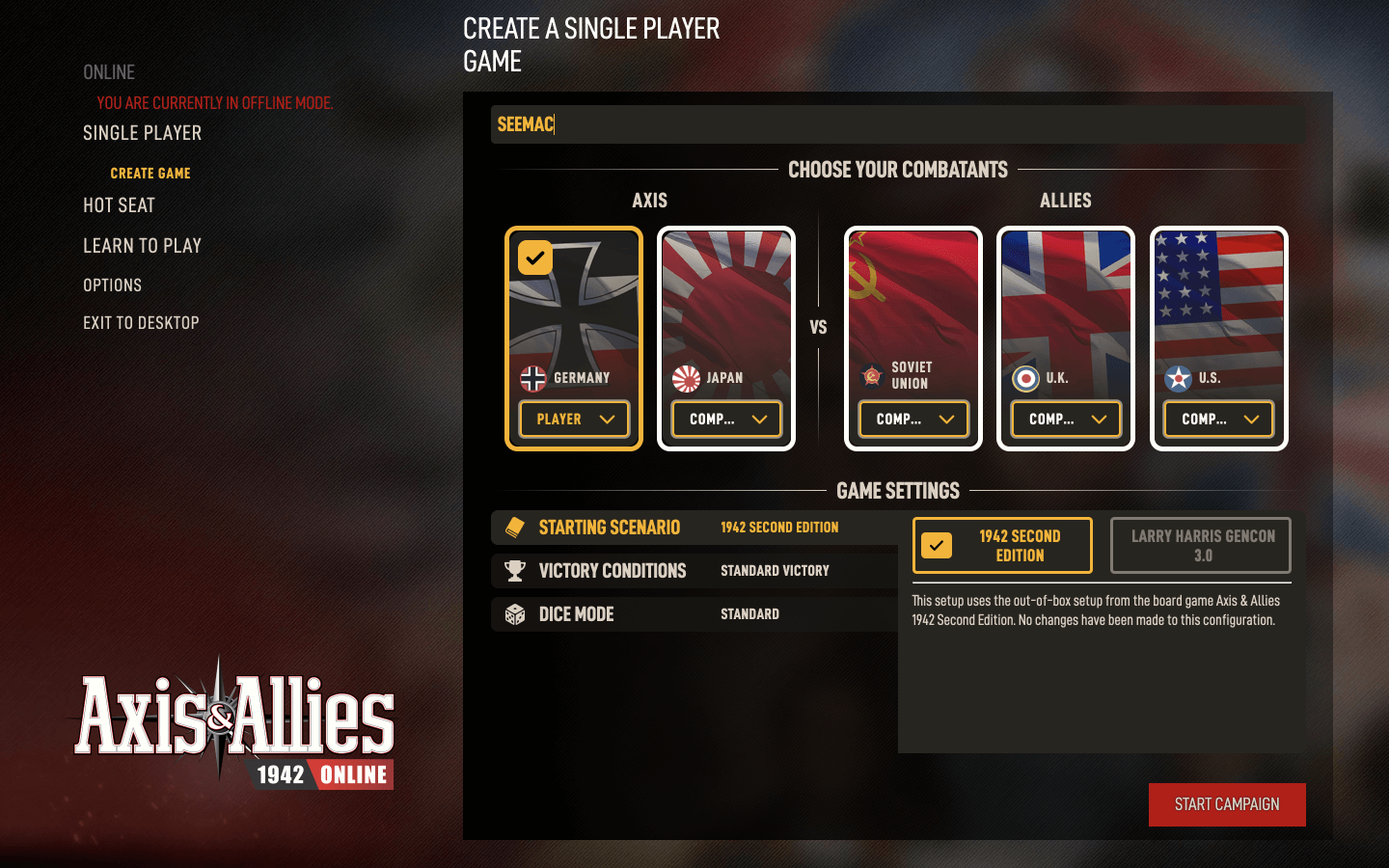 - 完整的轴心国和盟国1942年第二版经验
