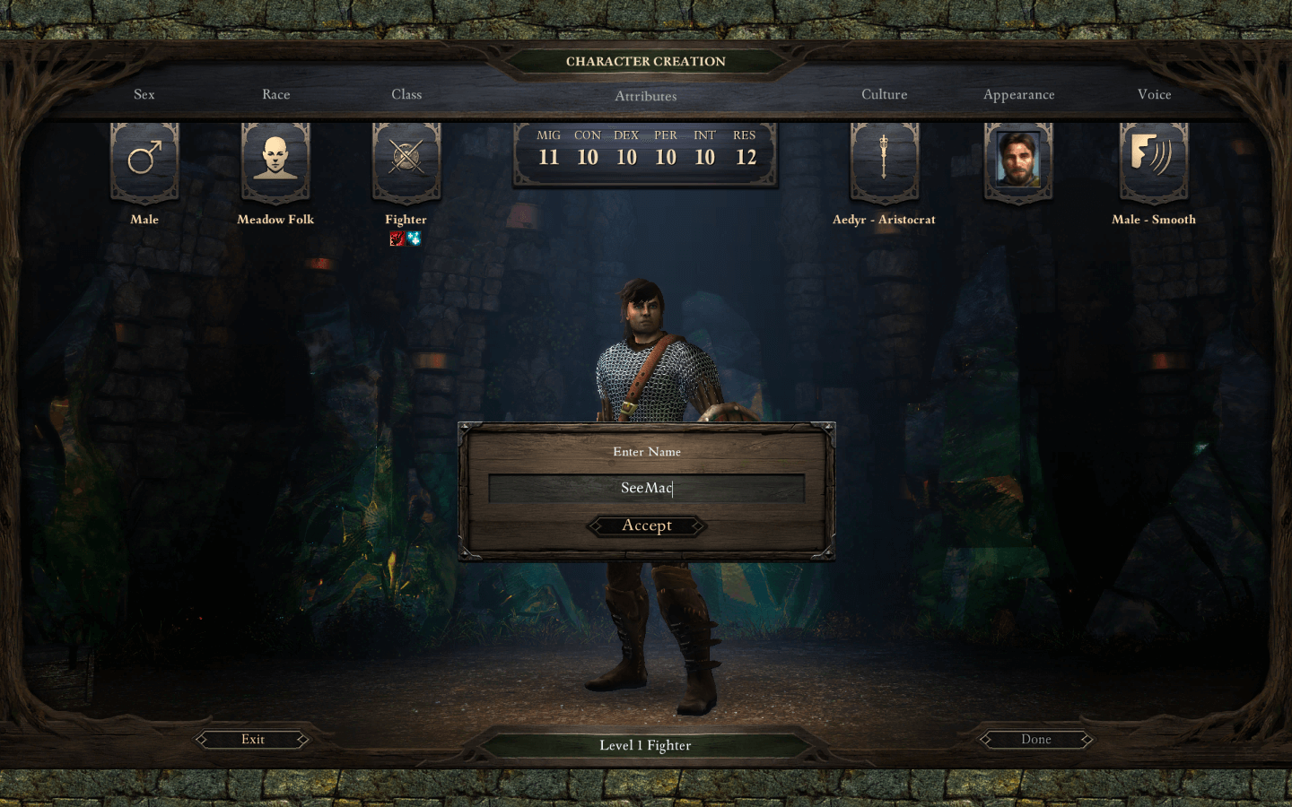 - 深层角色定制:塑造以下十一类角色中的一类:野蛮人、吟唱者、秘法师、德鲁伊教祭司、战士、僧侣、圣骑士、牧师、游侠、无赖和巫师。