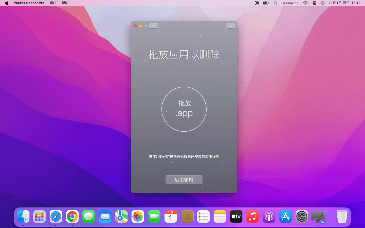将.app文件拖放到应用程序或停靠图标以将其删除。