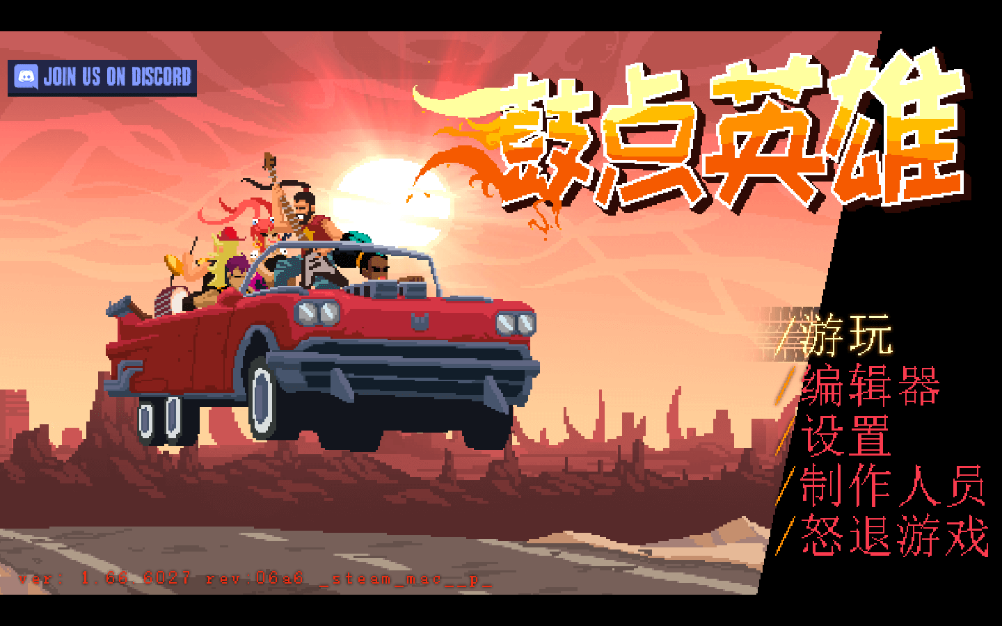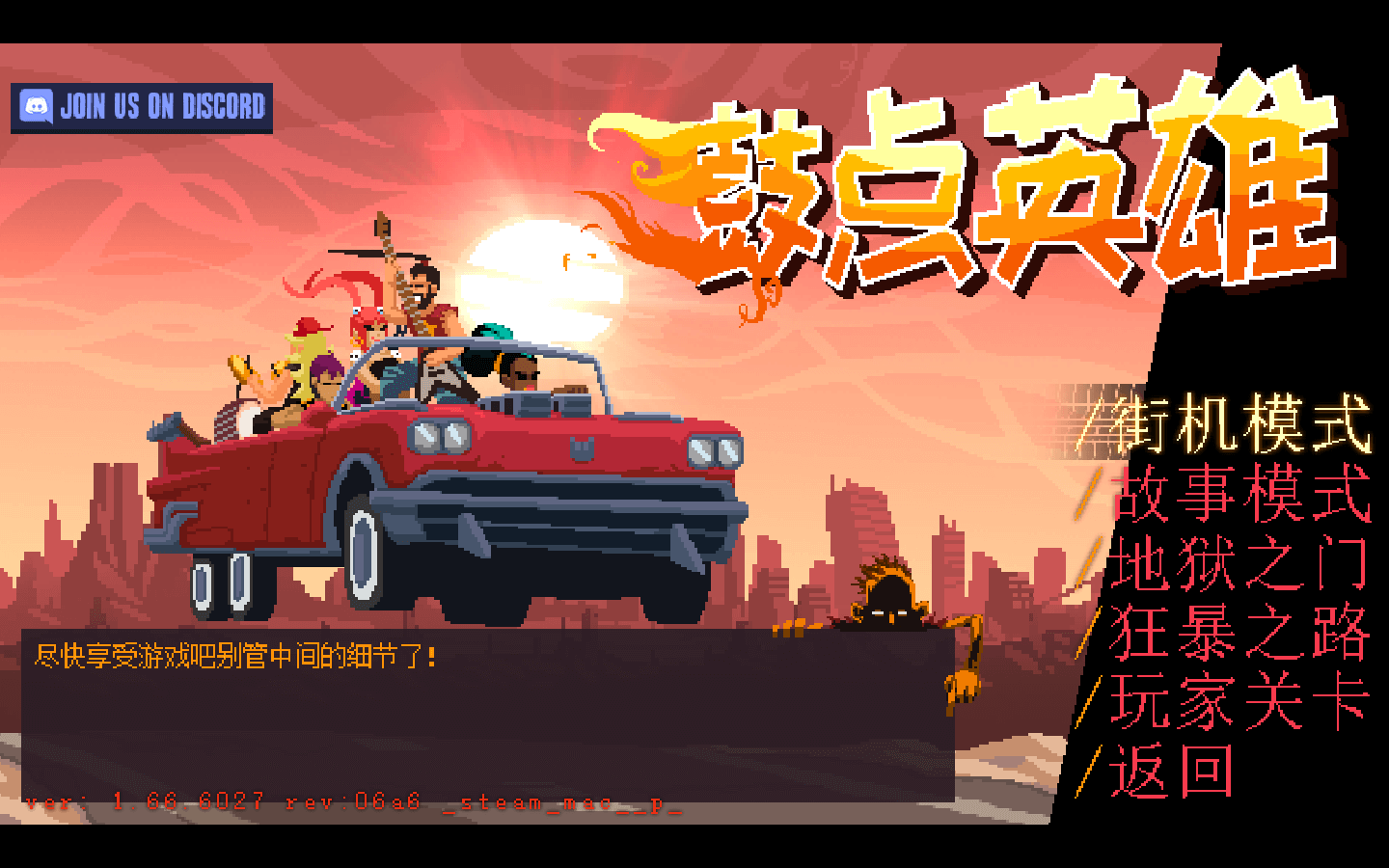 《鼓点英雄(Double Kick Heroes)》是一款加入了射击元素的节奏游戏。 你必须驾驶枪迪拉克,在地狱高速上杀出一条血路! 只有金属乐之力才能拯救你的乐队!
