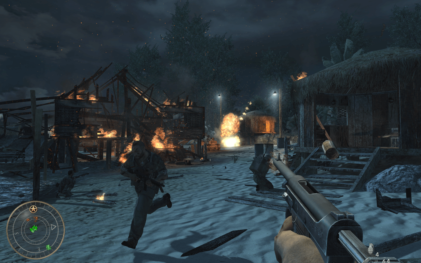 《使命召唤:战争世界》(Call of Duty: World at War)是一款由Treyarch开发的第一人称射击游戏。是使命召唤系列的第五代游戏,时间从前作的现代战争返回第二次世界大战,通过美国海军陆战队二等兵米勒和苏联红军二等兵迪米特里·彼得连科的角度讲述二战的真实战役。
