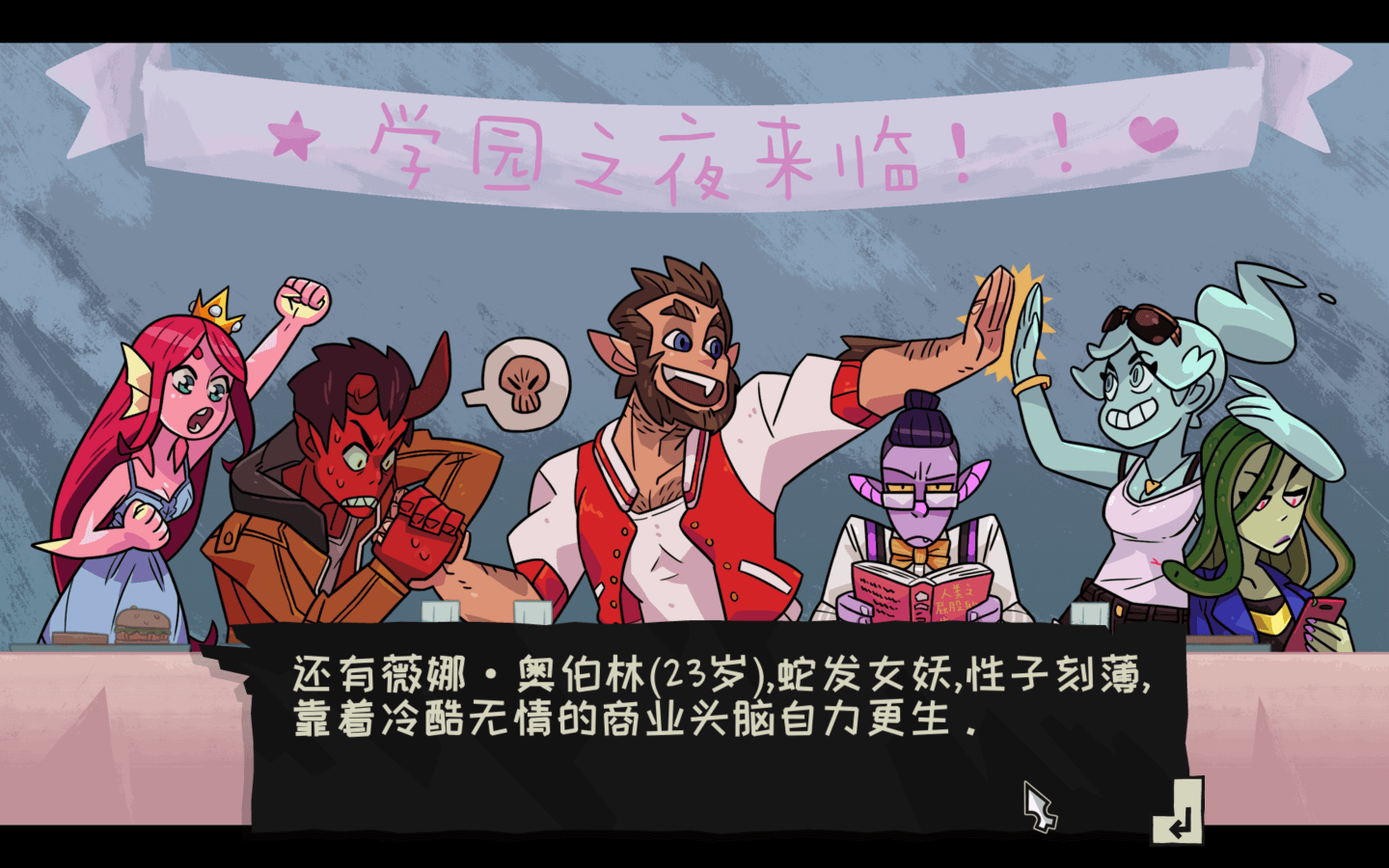 距离毕业舞会只有三周了,可你连舞伴都还没找到……而你是个魔物。不过别担心,因为在你的高中里面每个人都是魔物!这就是《魔物学园》,支持1-4人同时游玩的竞技约会模拟器,一款让你思考“我从来没想过我居然会喜欢这样子!”的游戏。