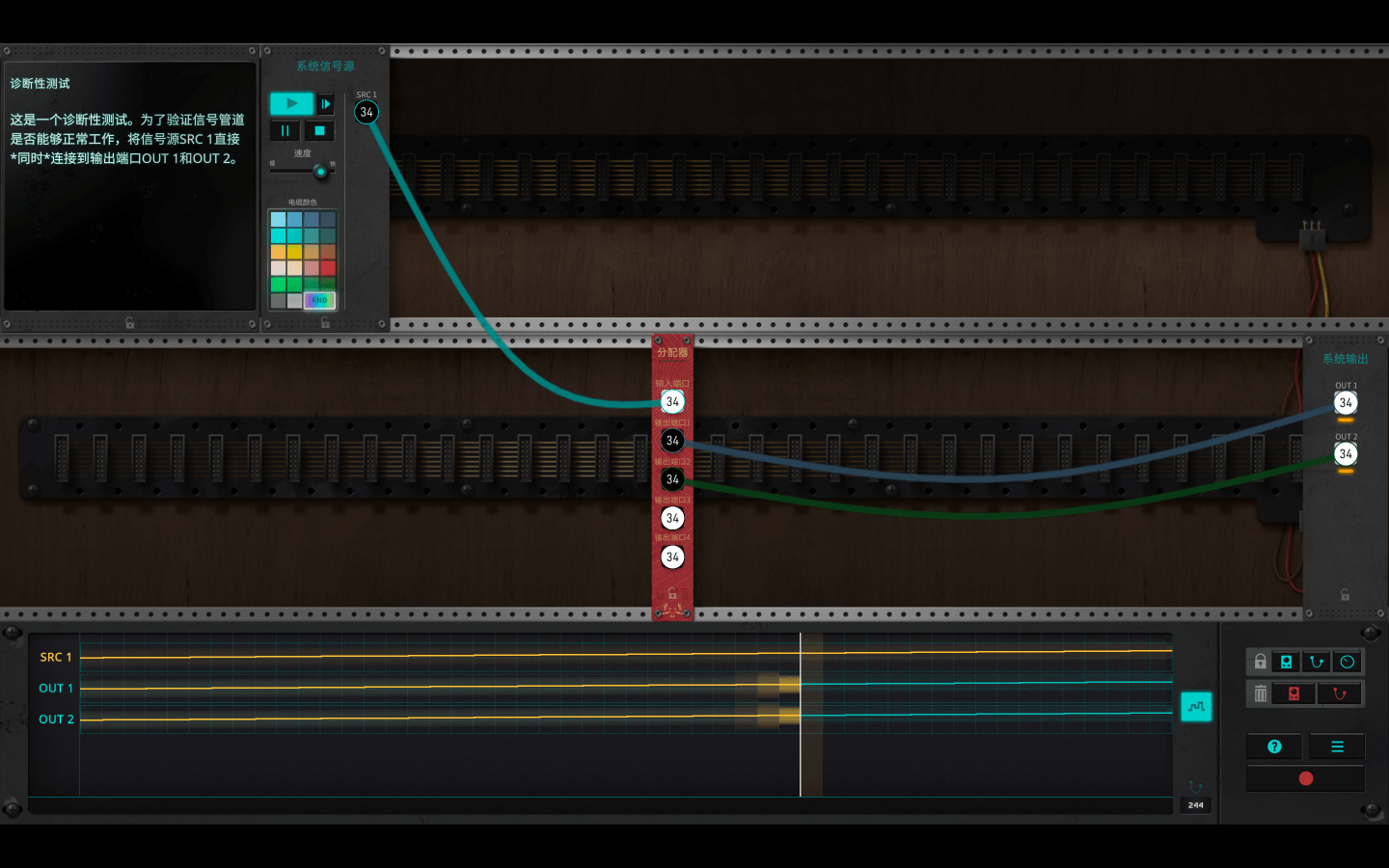 通过简明的拖拽操作来布设模块元件,连接线缆,来操纵输入信号。